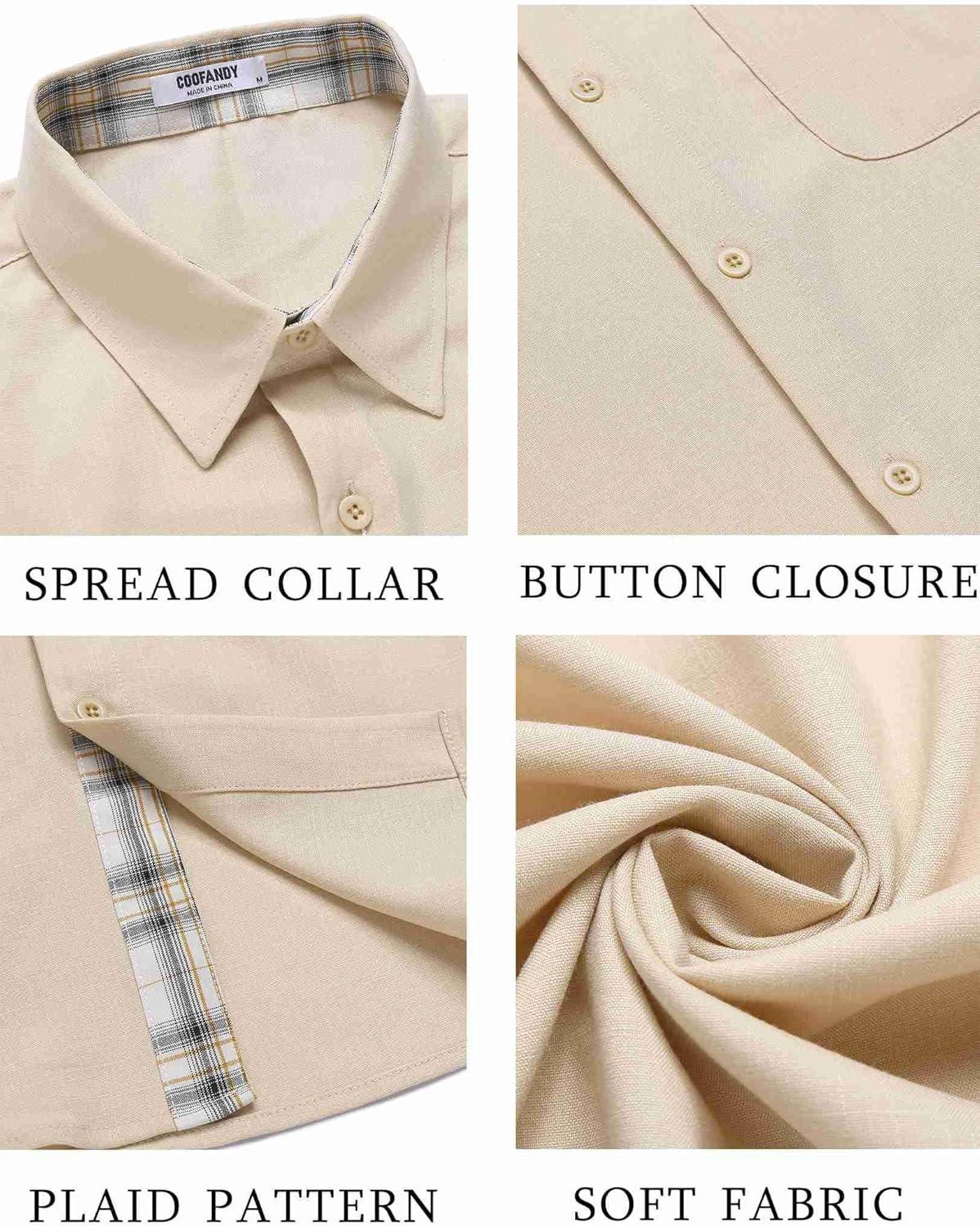 COOFANDY Men’s Button Down Shirts Short Sleeve Casual Shirts Summer Beach Shirts Vacation Wedding Shirts with Pocket(Beige)