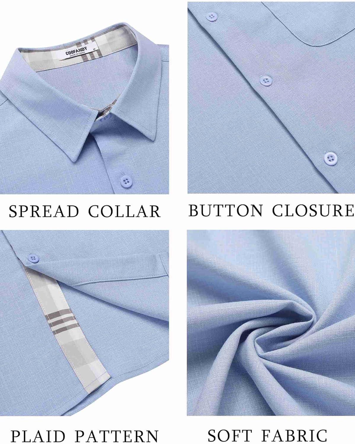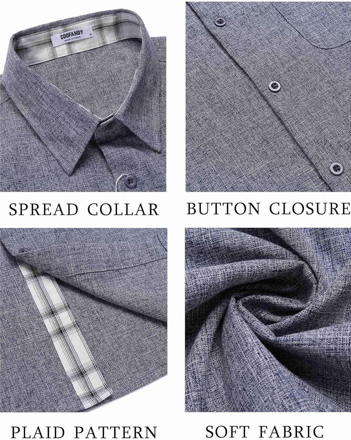 COOFANDY Men’s Beach Summer Cotton Linen Stretch Shirt Novelty Button Down Shirts Vacation Shirts for Men Dark Grey