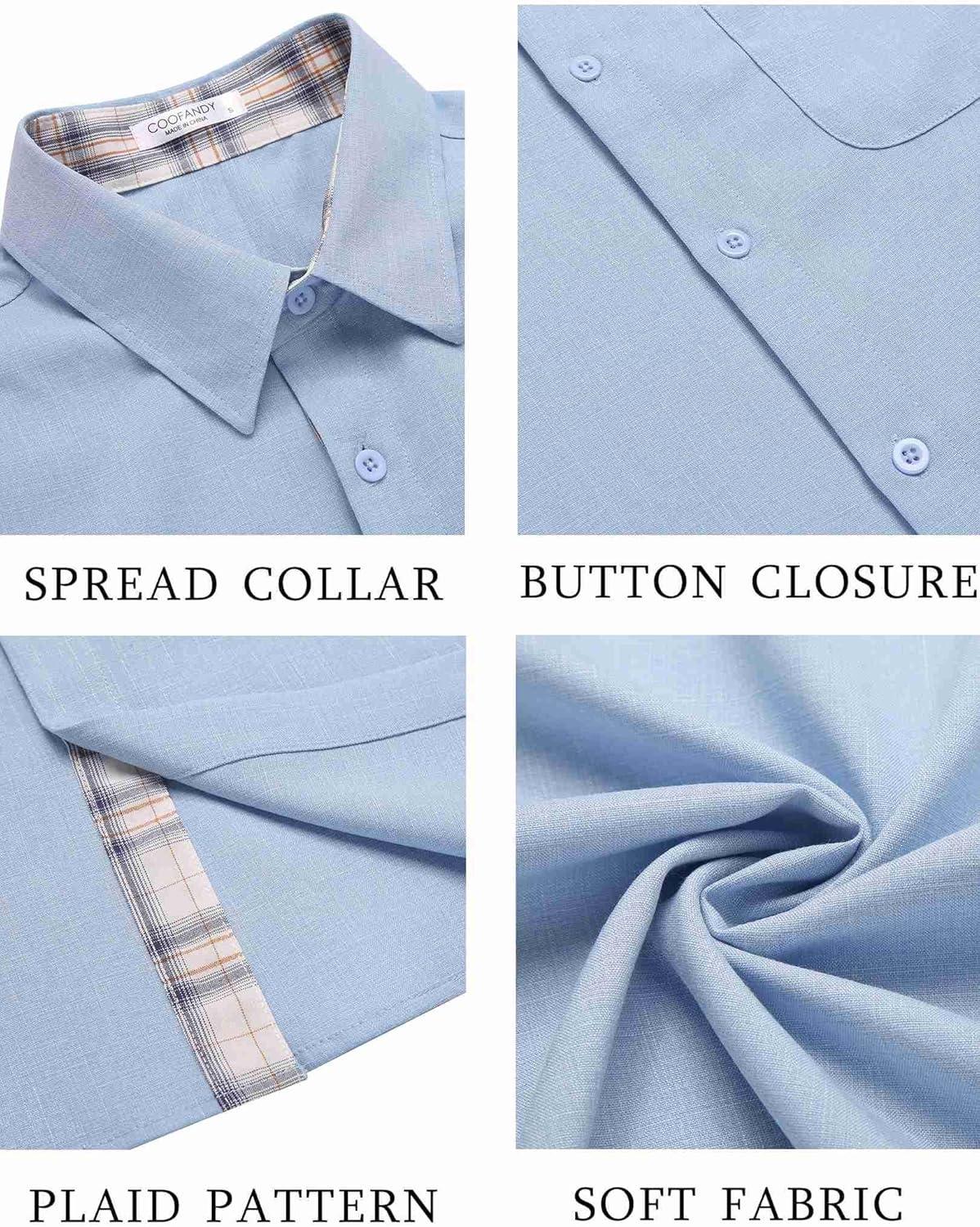 COOFANDY Men’s Button Down Shirts Short Sleeve Casual Shirts Summer Beach Shirts Vacation Wedding Shirts with Pocket(Clear Blue – Light Brown Plaid)