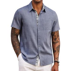 COOFANDY Men’s Button Down Shirts Short Sleeve Casual Shirts Summer Beach Shirts Vacation Wedding Shirts with Pocket(Blue)