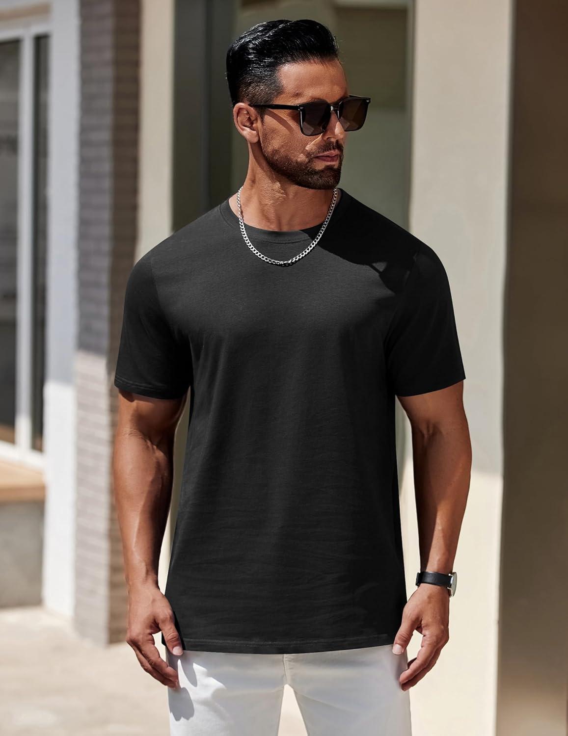 COOFANDY Mens T-Shirts 100% Cotton Premium Short Sleeve Shirt Crew Neck Basic Tshirt(Black)