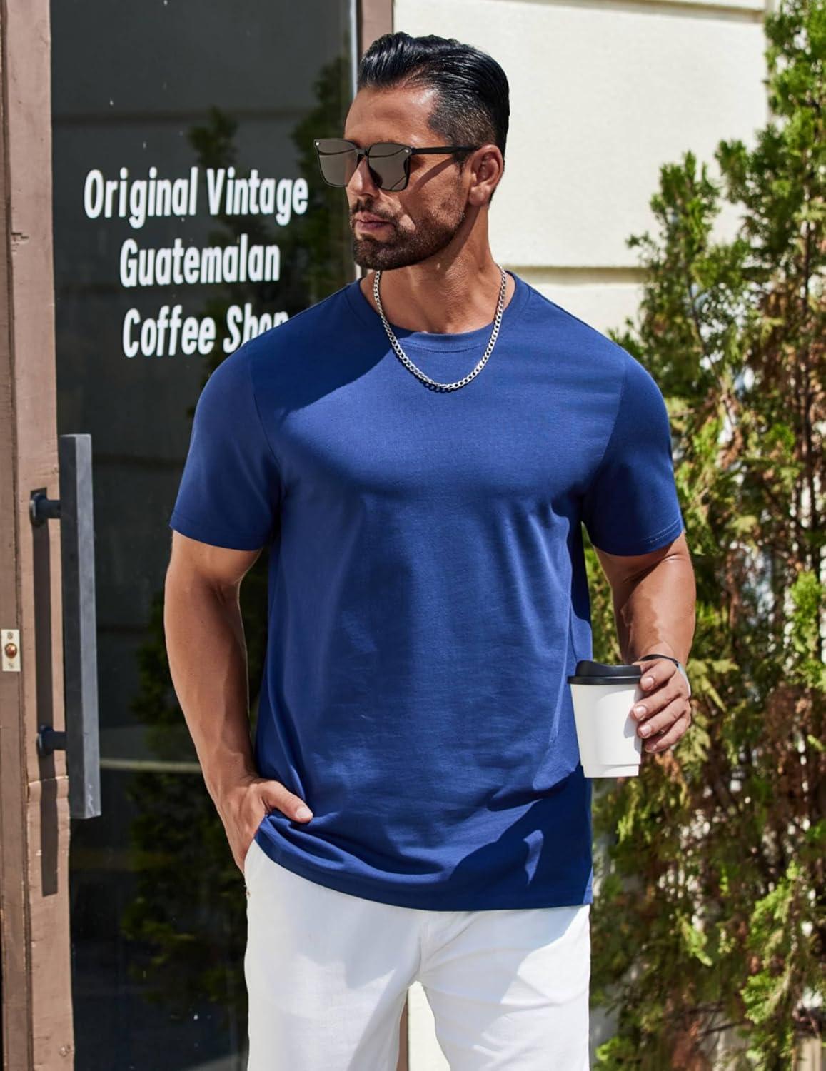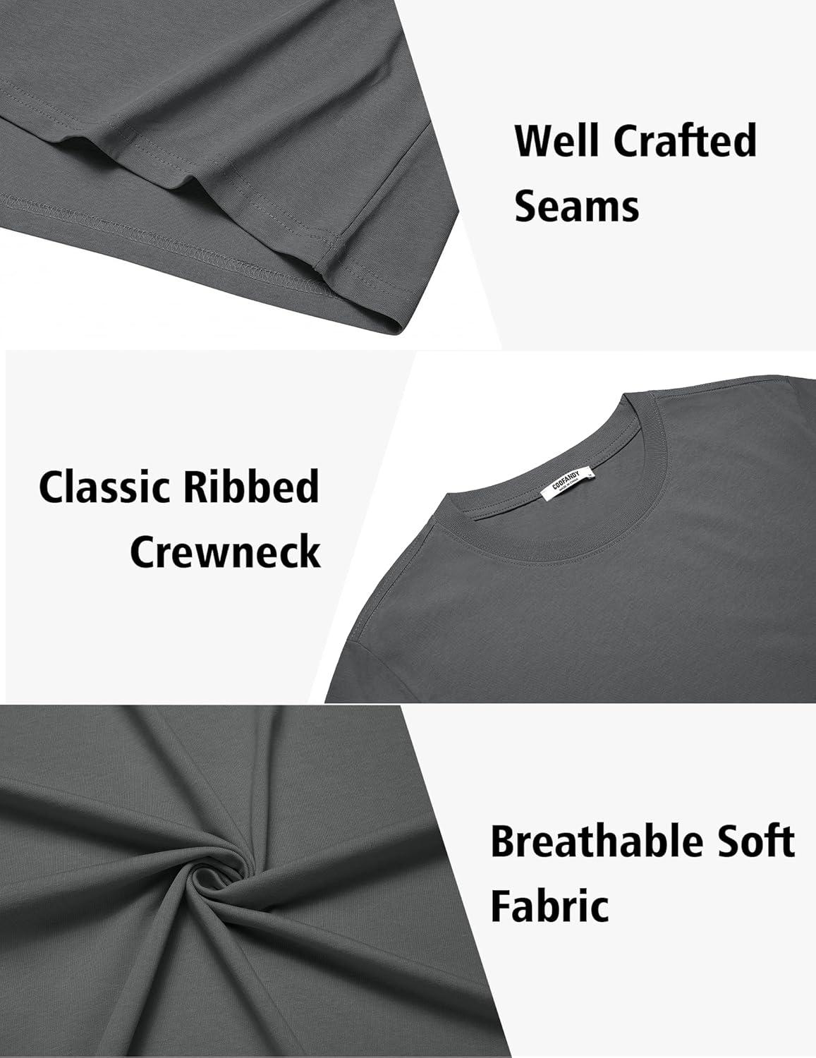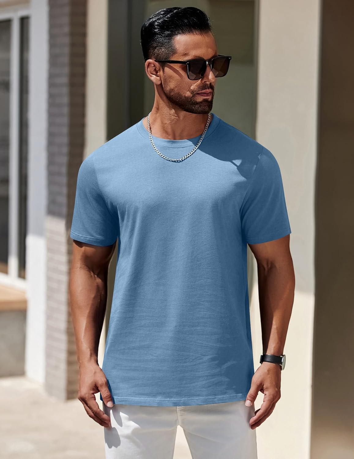 COOFANDY Mens T-Shirts 100% Cotton Premium Short Sleeve Shirt Crew Neck Basic Tshirt(Grey Blue)