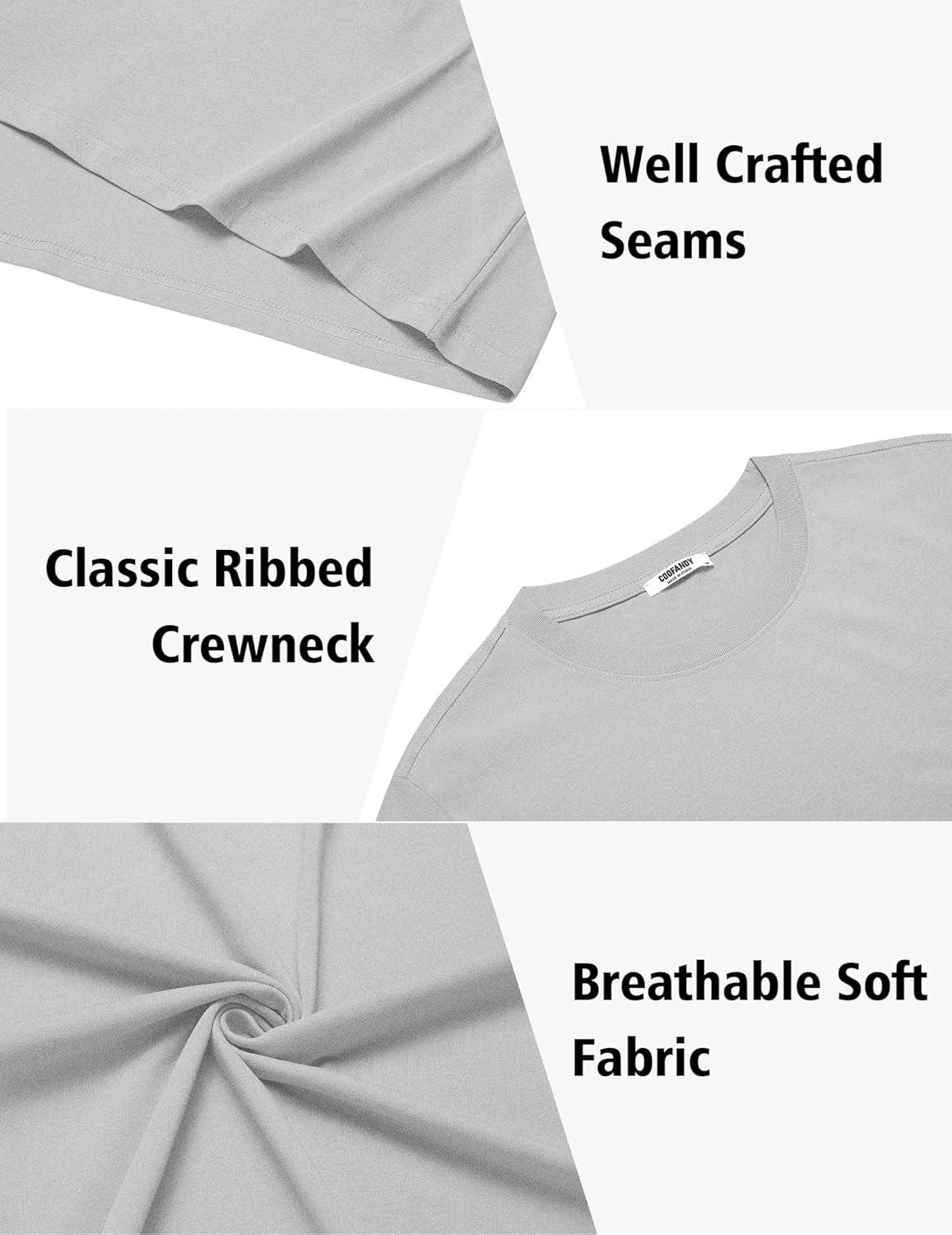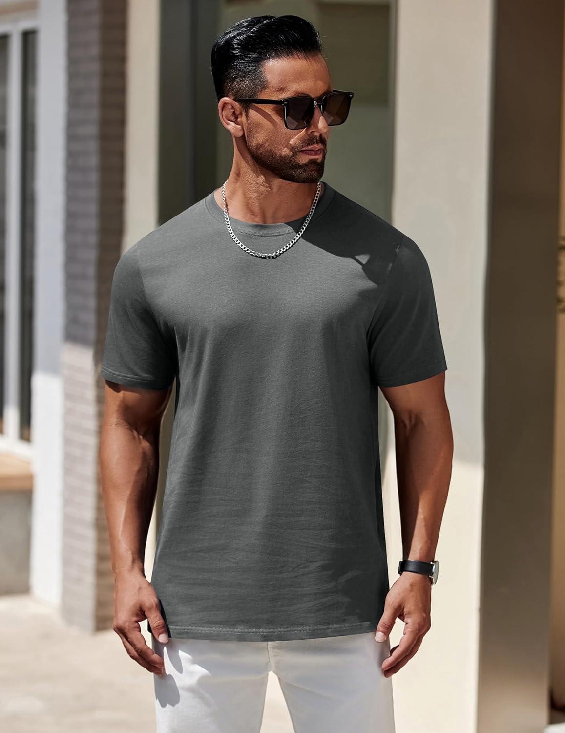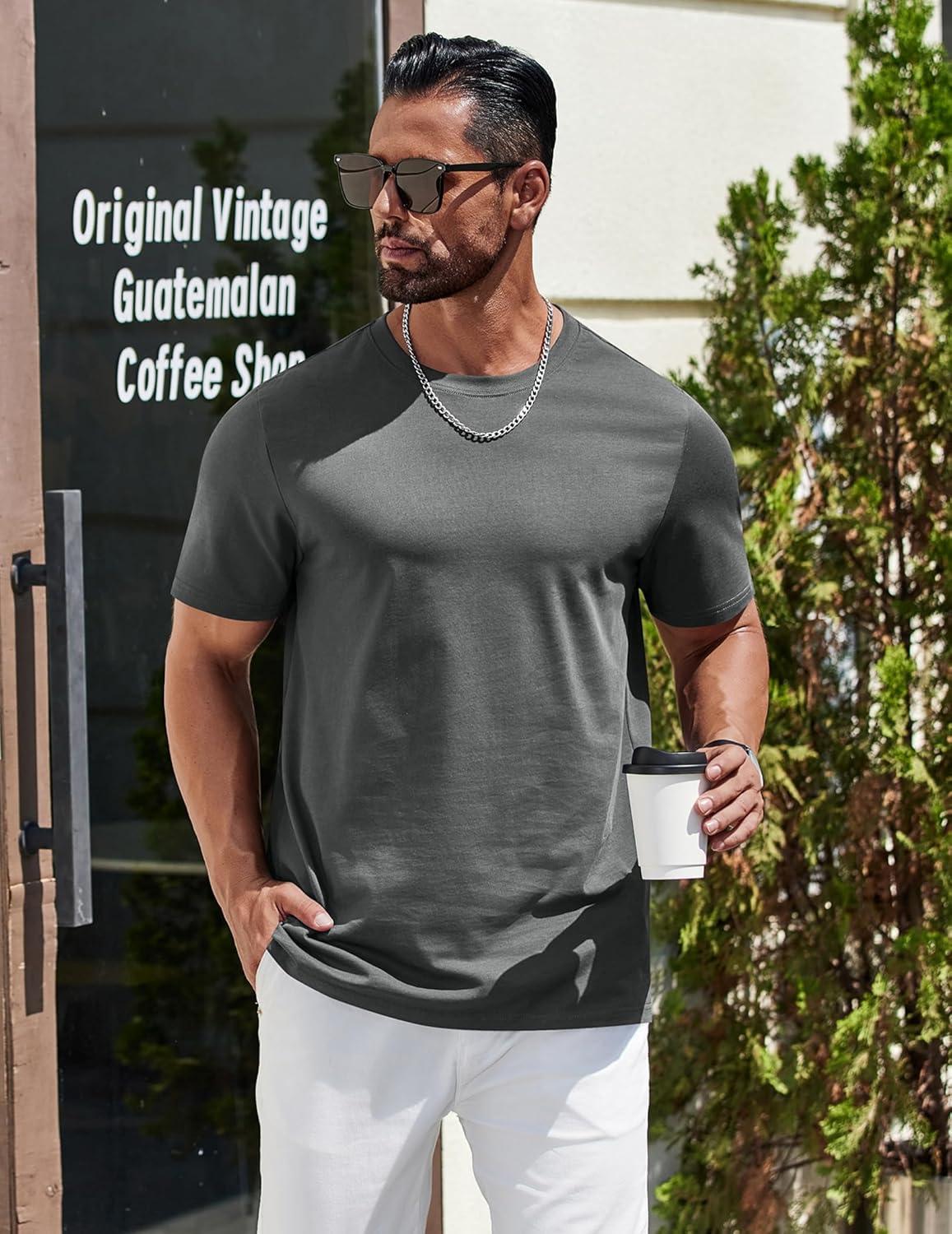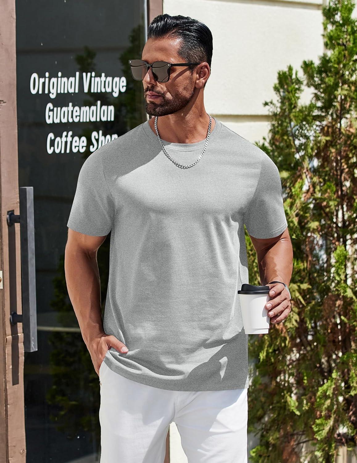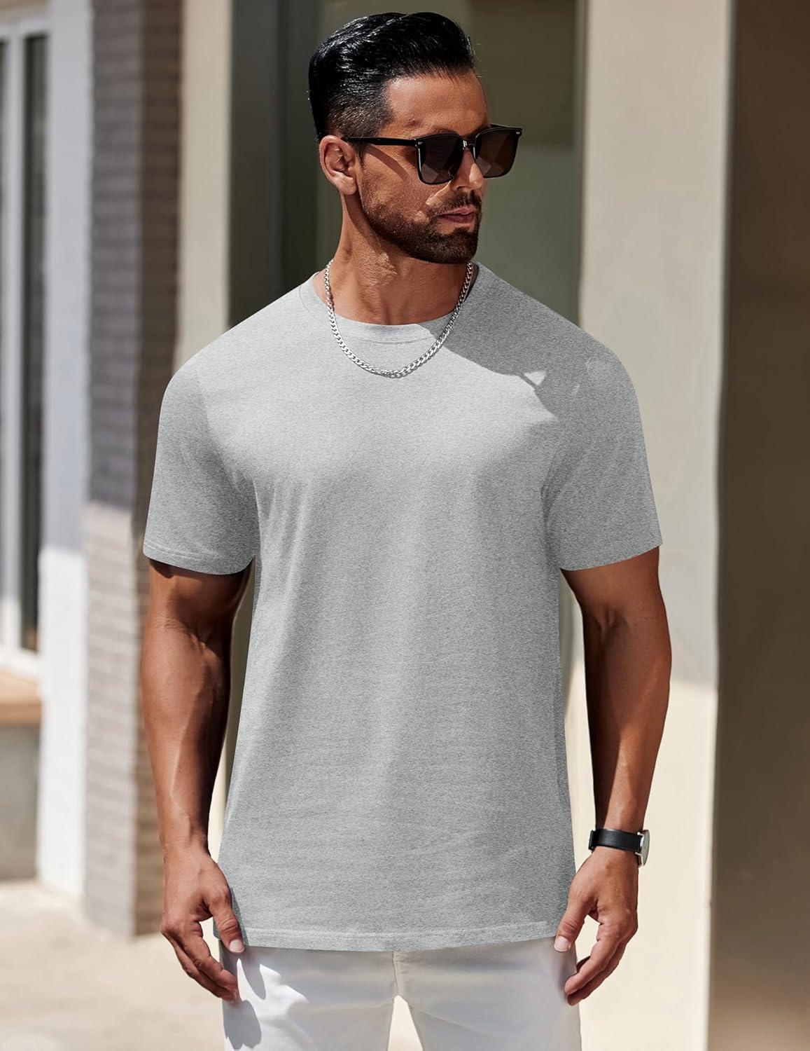 COOFANDY Mens T-Shirts 100% Cotton Premium Short Sleeve Shirt Crew Neck Basic Tshirt(Light Heather Grey)