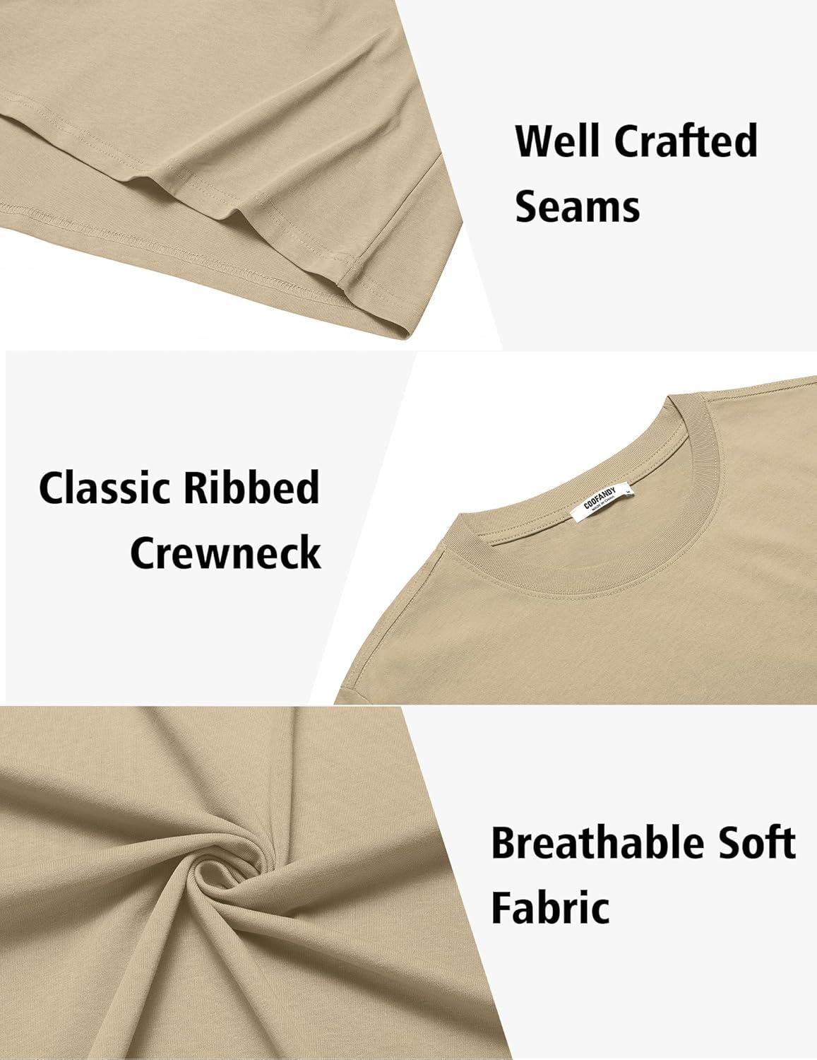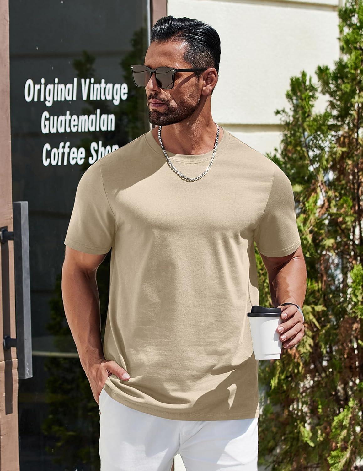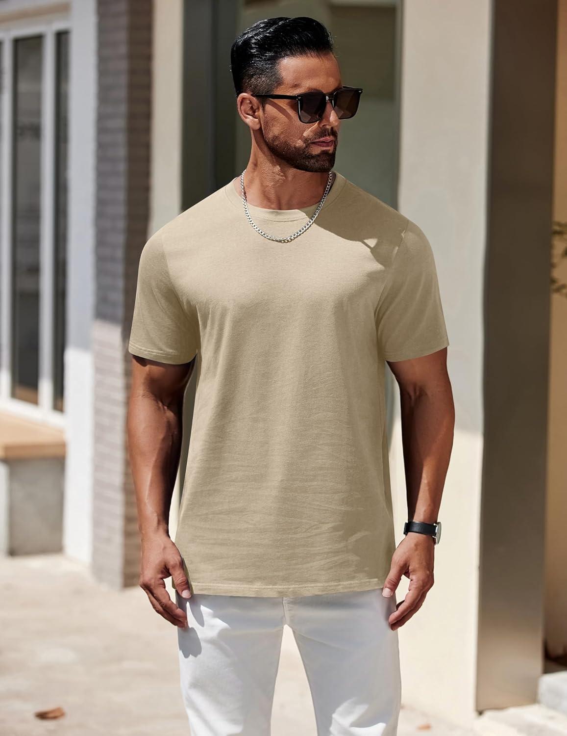 COOFANDY Mens T-Shirts 100% Cotton Premium Short Sleeve Shirt Crew Neck Basic Tshirt(Khaki)