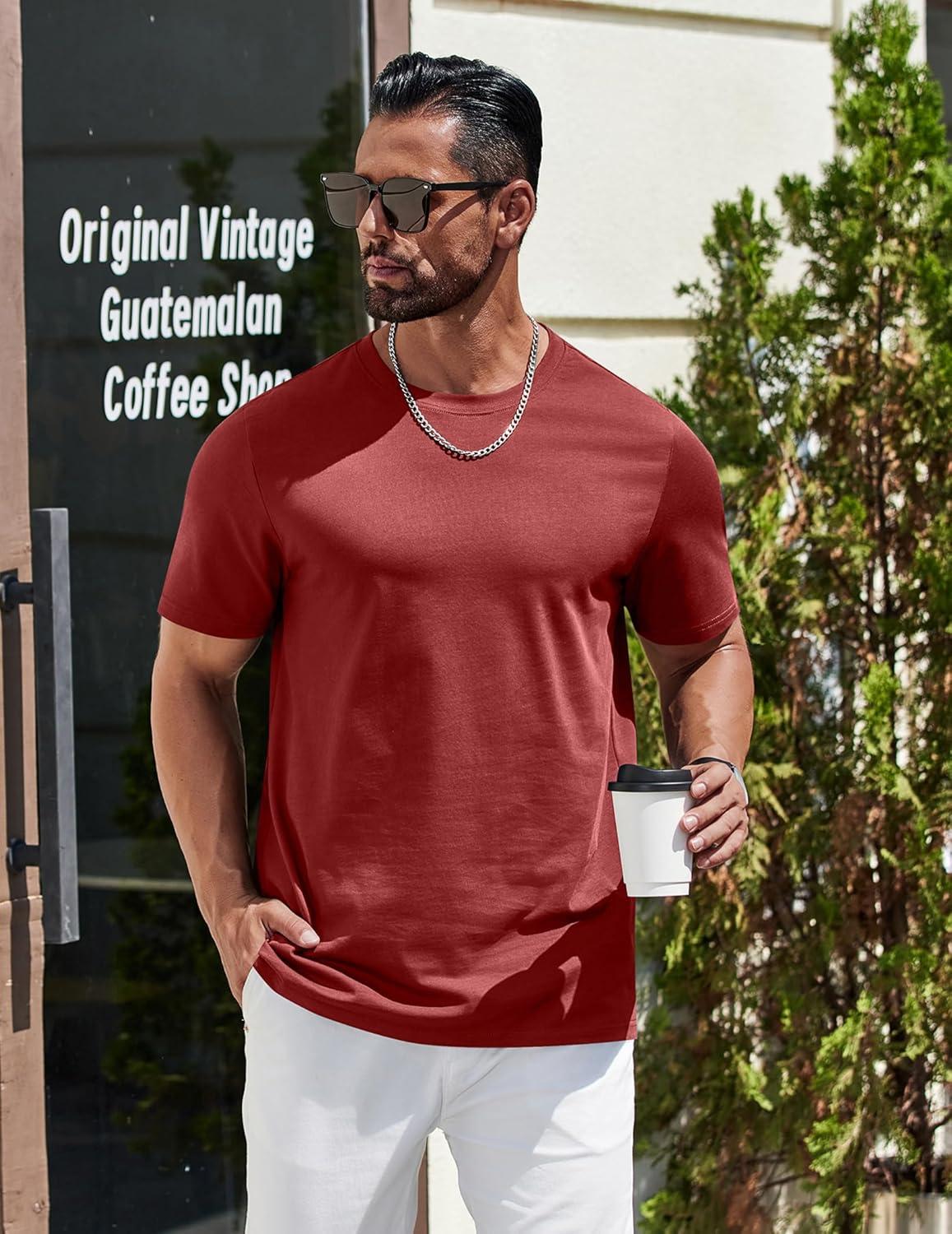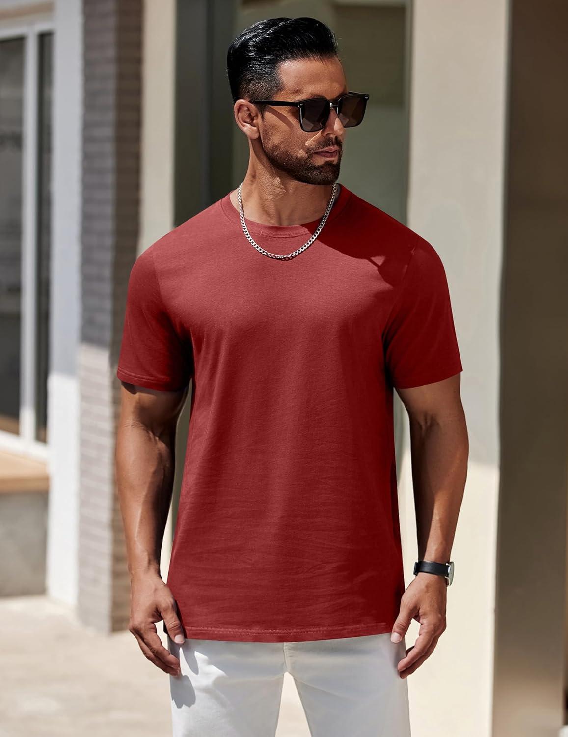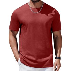 COOFANDY Mens T-Shirts 100% Cotton Premium Short Sleeve Shirt Crew Neck Basic Tshirt(Wine Red)
