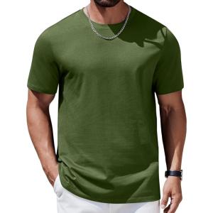 COOFANDY Mens T-Shirts 100% Cotton Premium Short Sleeve Shirt Crew Neck Basic Tshirt(Army Green)