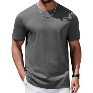 COOFANDY Mens T-Shirts 100% Cotton Premium Short Sleeve Shirt Crew Neck Basic Tshirt(Dark Green Grey)