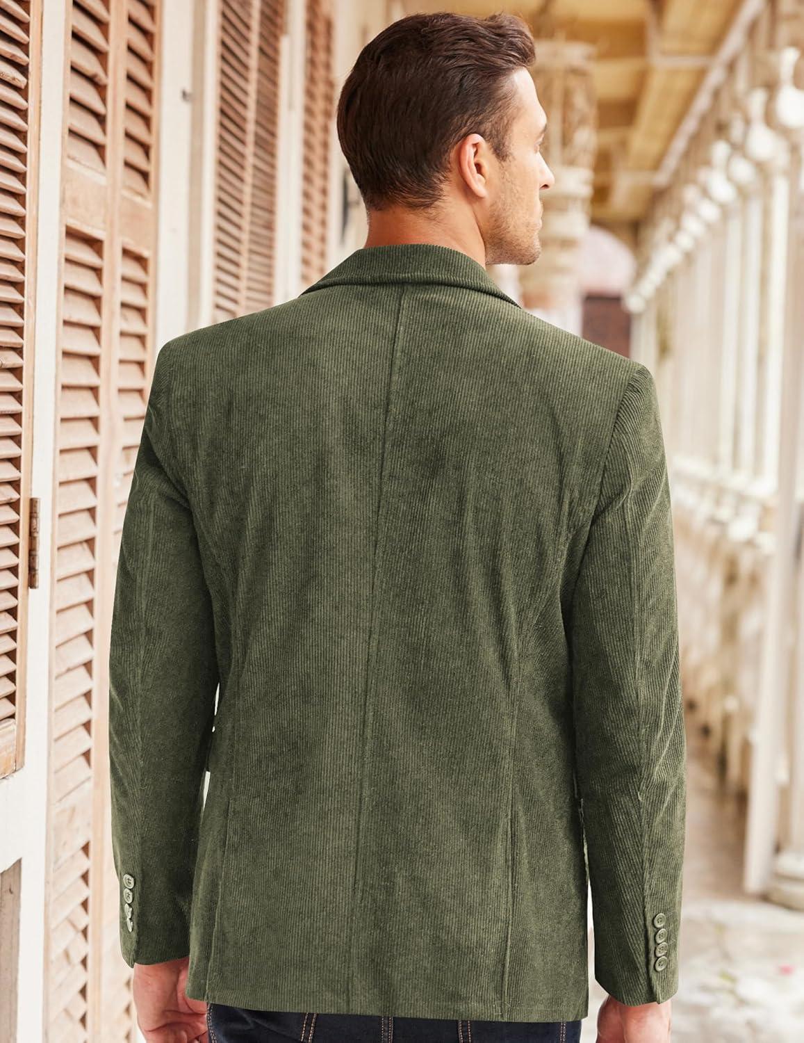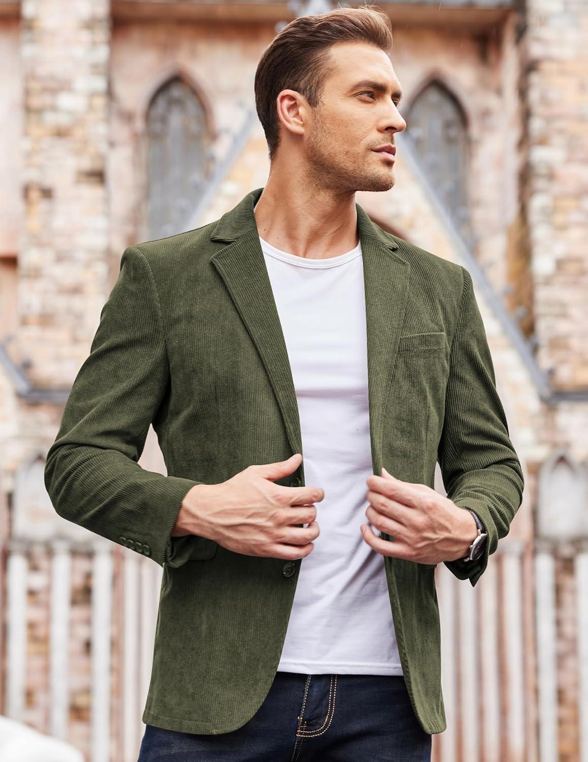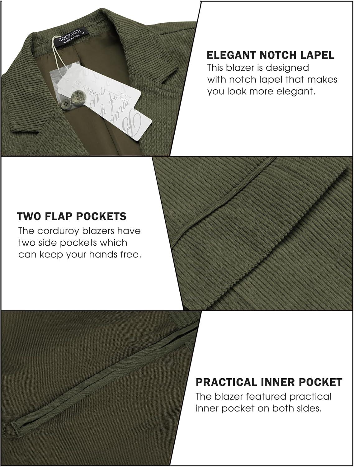 COOFADNY Men’s Casual Corduroy Blazer Classic Fit Two Button Sport Coat Fashion Notch Lapel Blazer Jacket(Army Green)