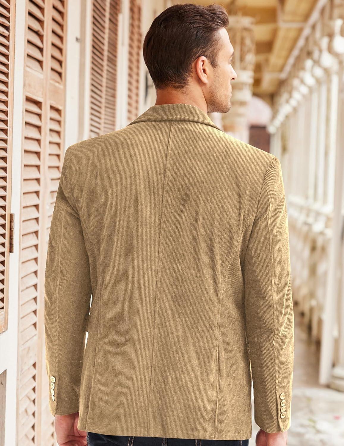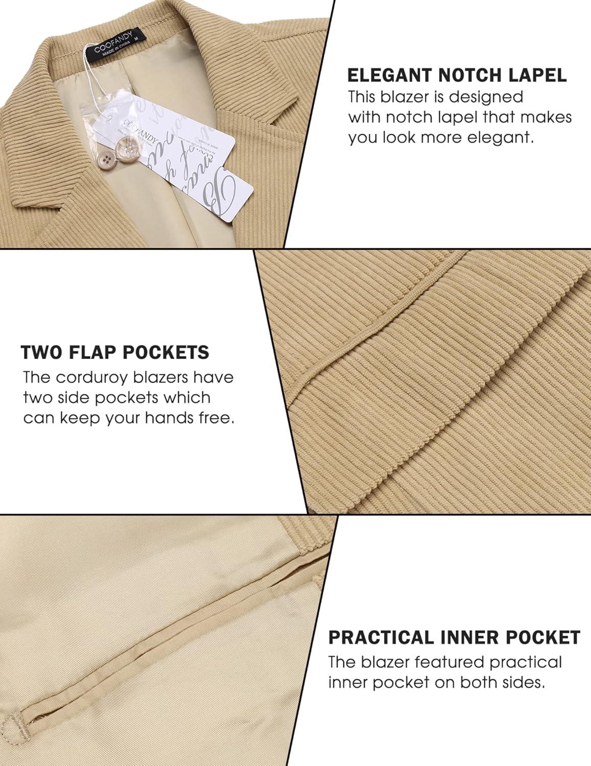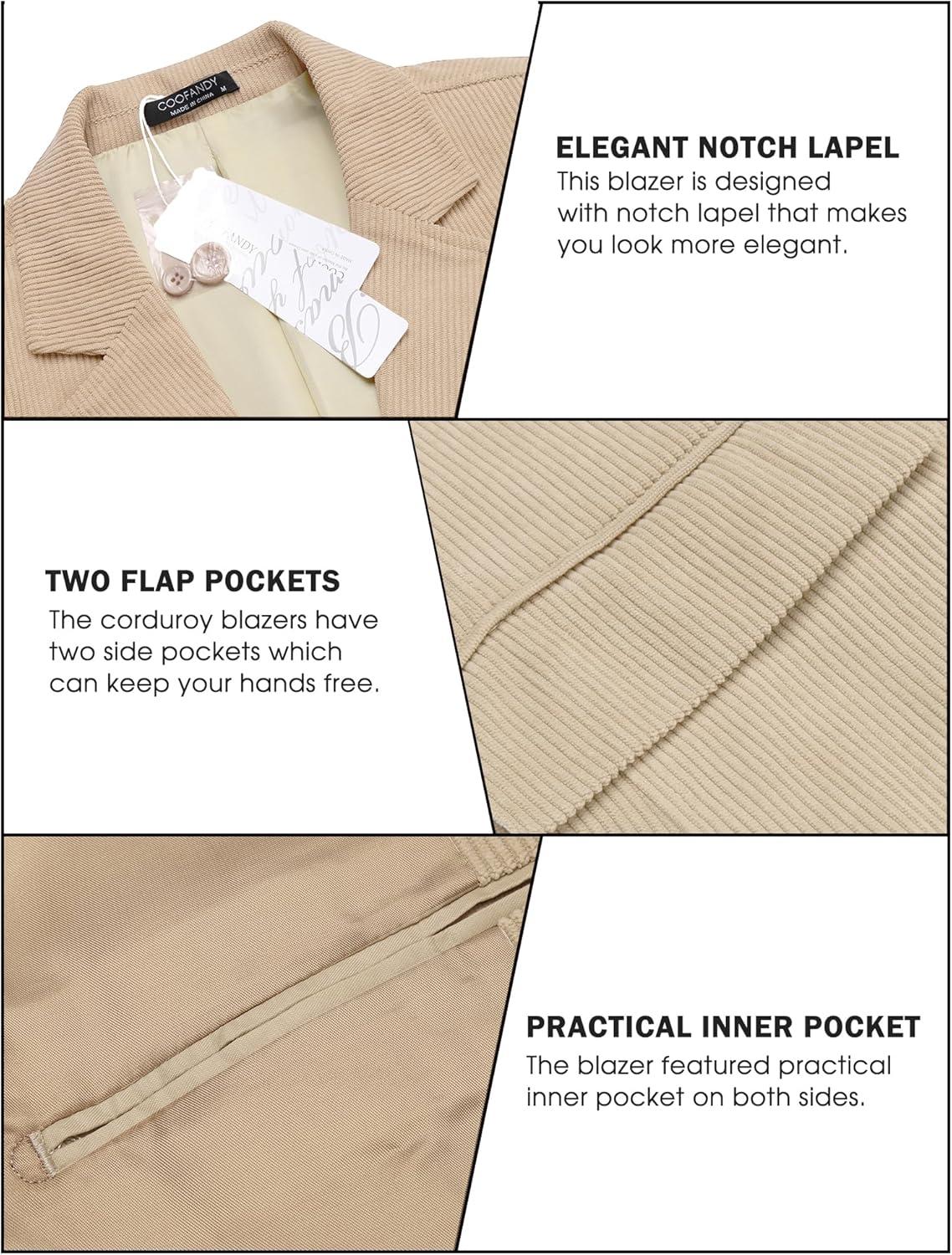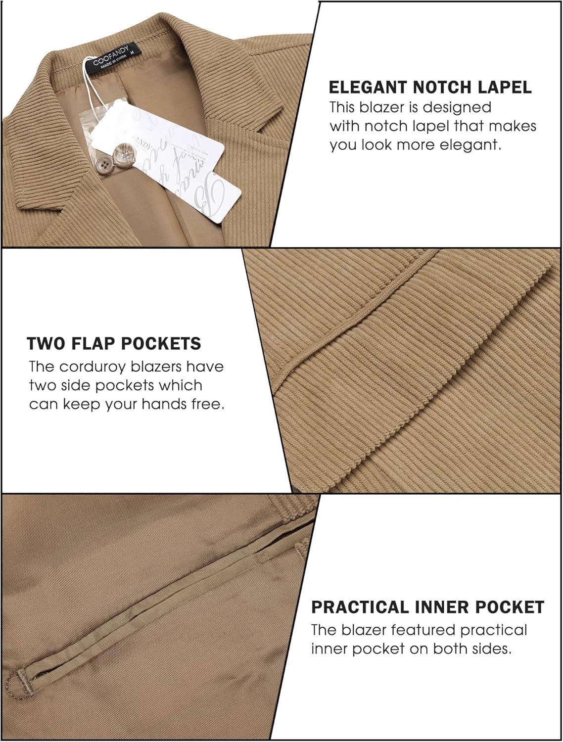 COOFADNY Men’s Casual Corduroy Blazer Classic Fit Two Button Sport Coat Fashion Notch Lapel Blazer Jacket(Khaki)