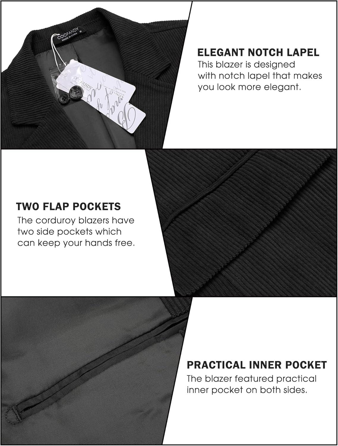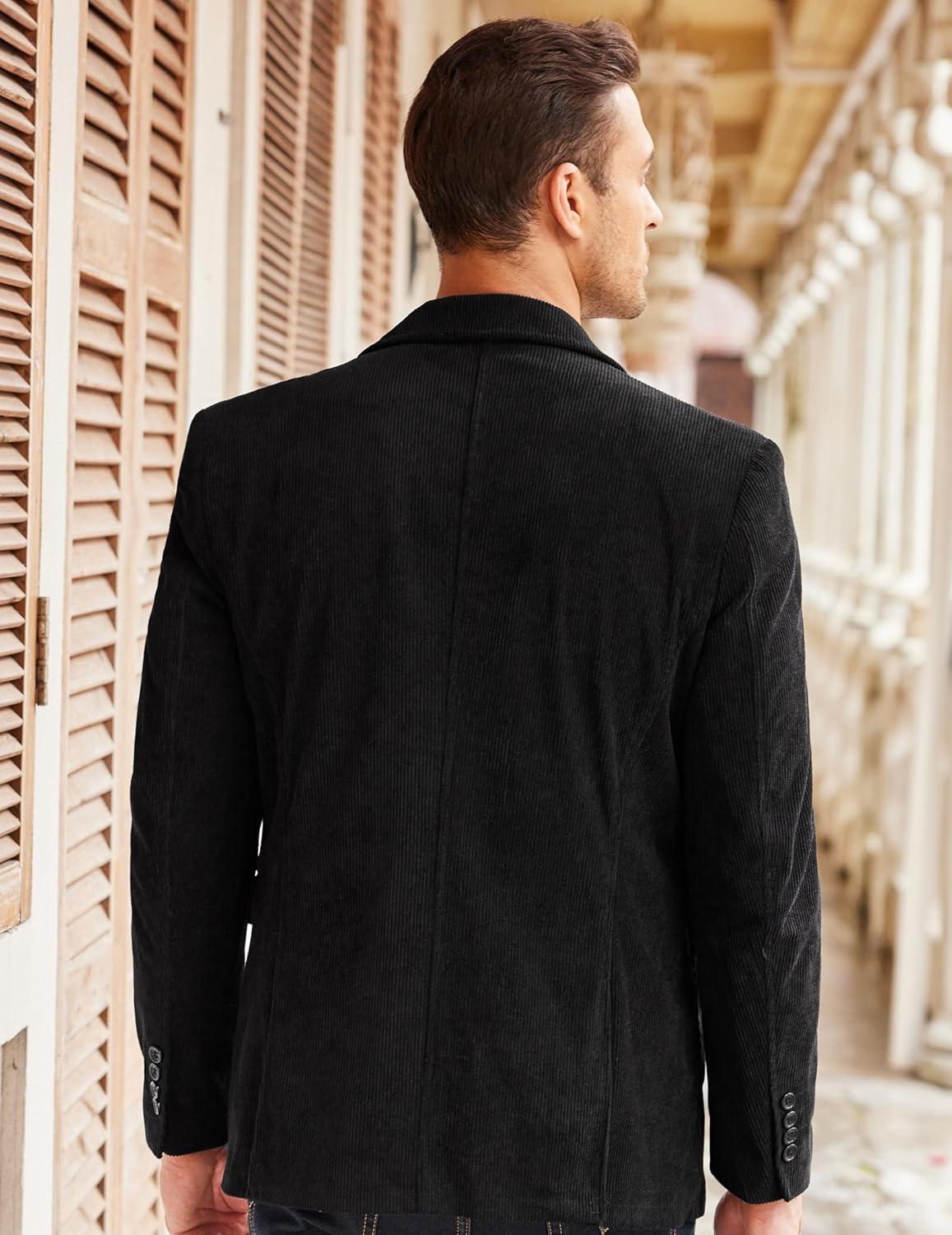 COOFADNY Men’s Casual Corduroy Blazer Classic Fit Two Button Sport Coat Fashion Notch Lapel Blazer Jacket(Black)