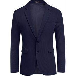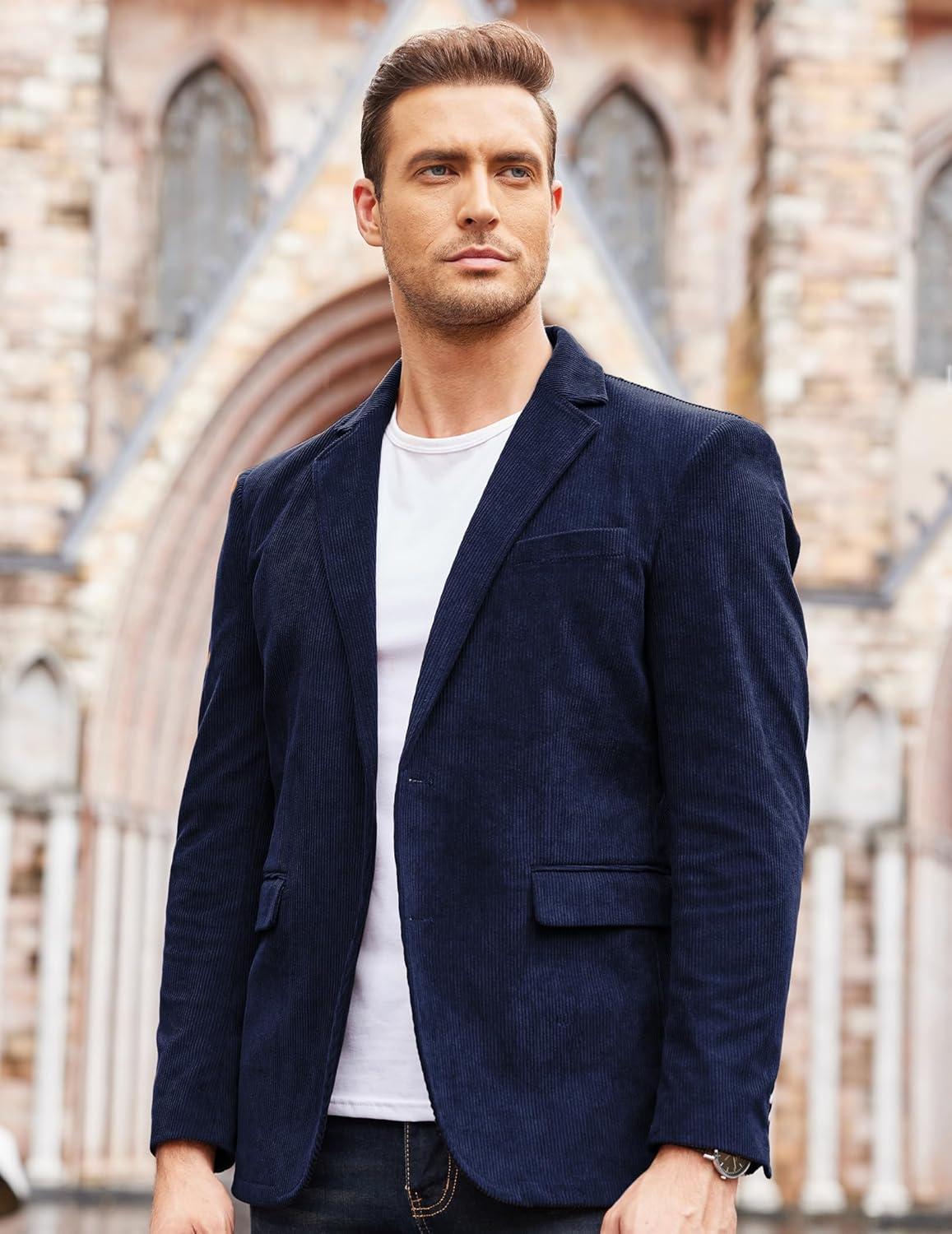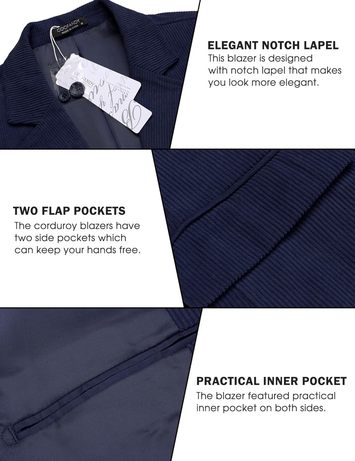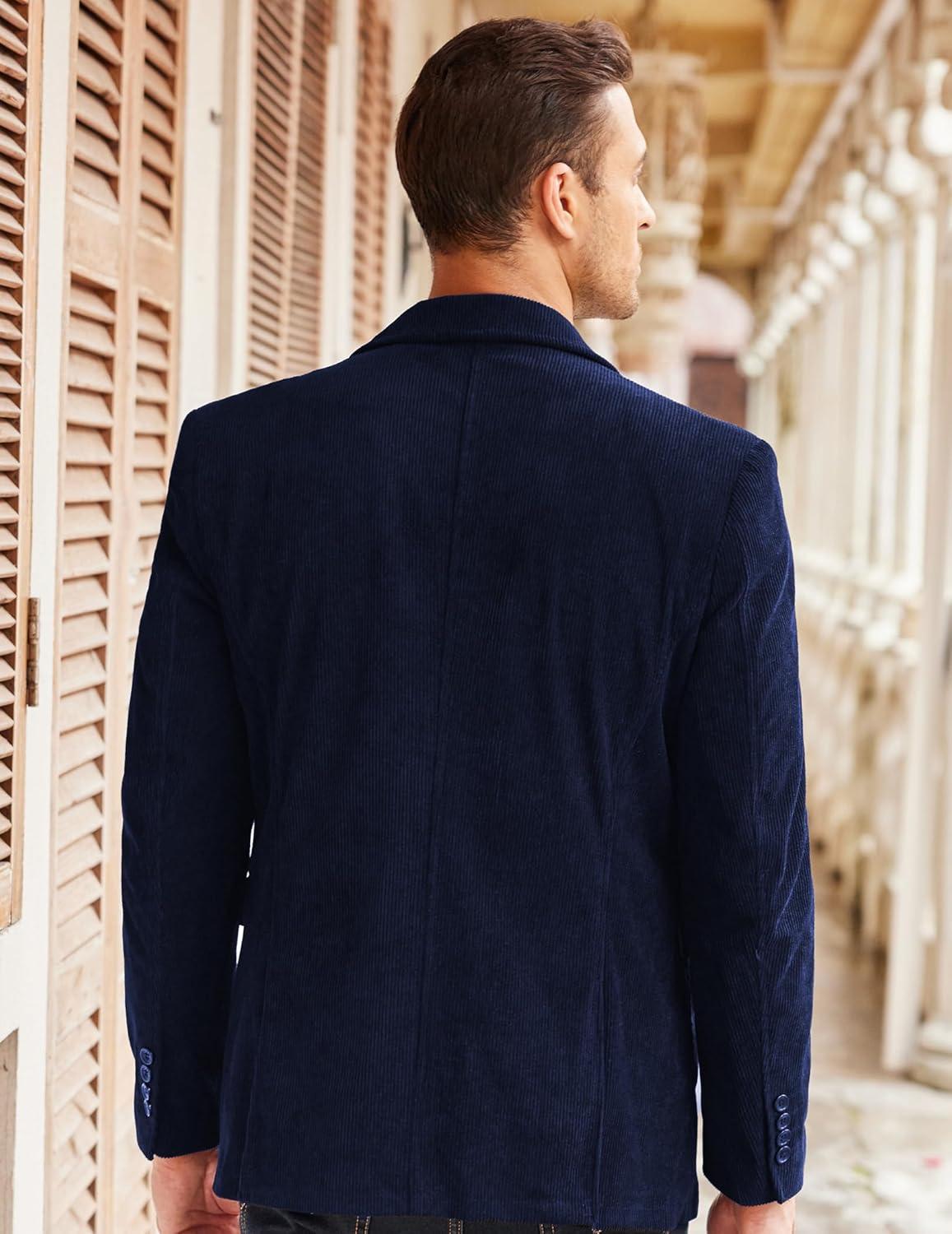 COOFADNY Men’s Casual Corduroy Blazer Classic Fit Two Button Sport Coat Fashion Notch Lapel Blazer Jacket(Dark Blue)