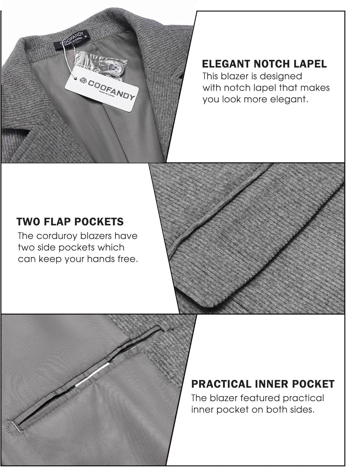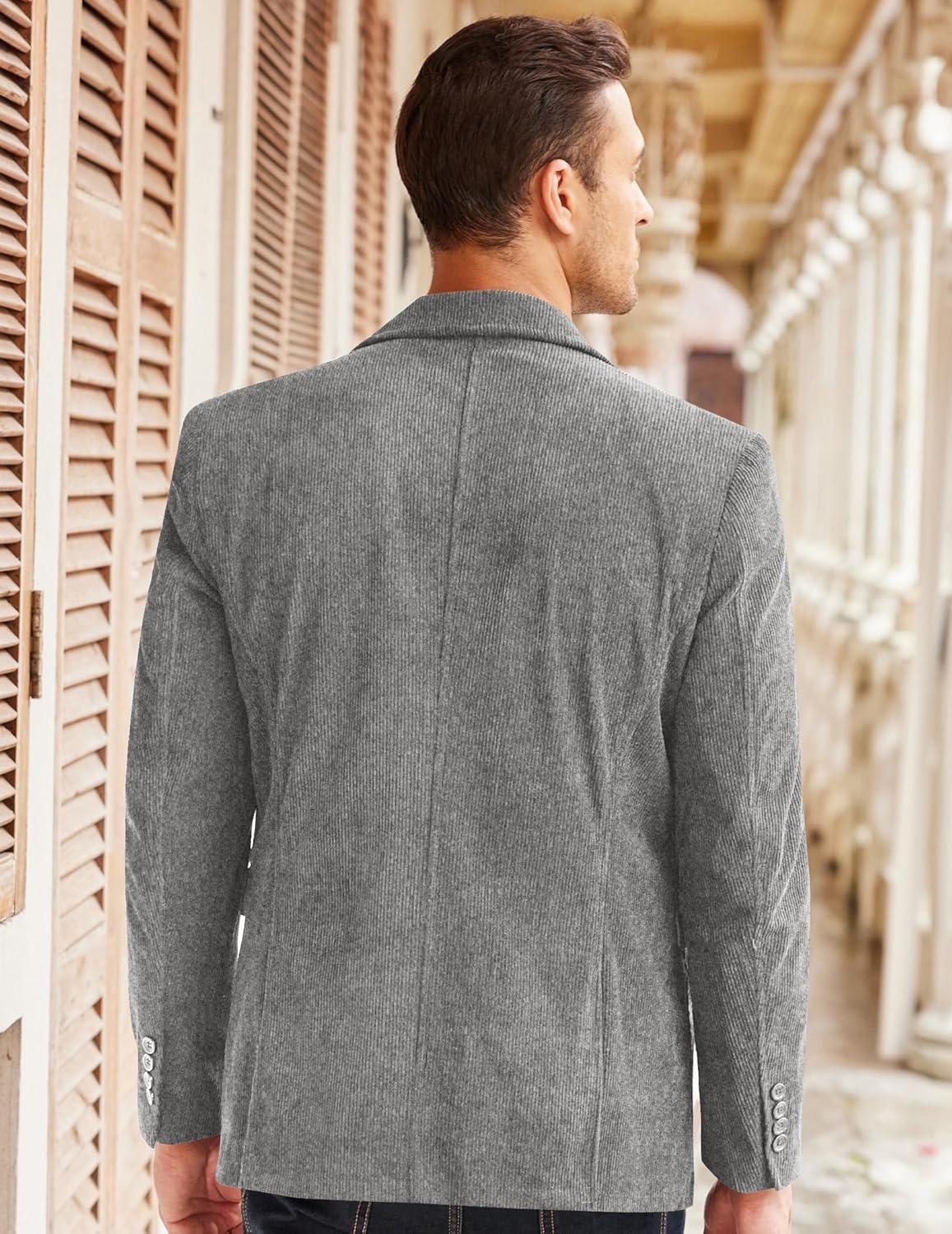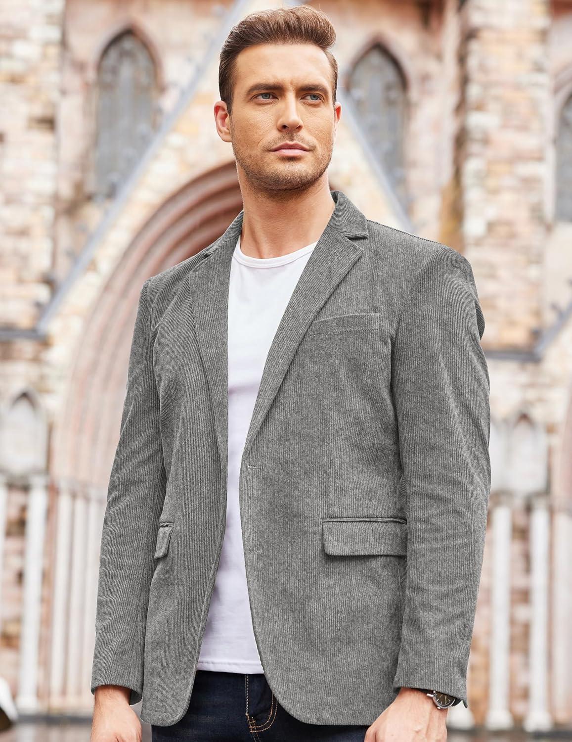 COOFADNY Men’s Casual Corduroy Blazer Classic Fit Two Button Sport Coat Fashion Notch Lapel Blazer Jacket(Dark Gray)