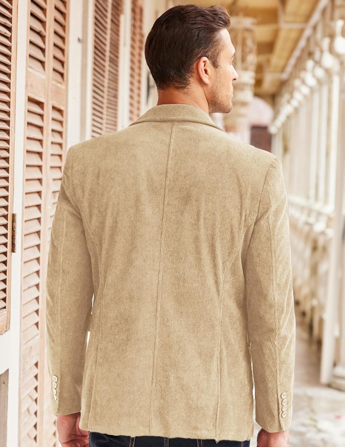 COOFADNY Men’s Casual Corduroy Blazer Classic Fit Two Button Sport Coat Fashion Notch Lapel Blazer Jacket(Beige)