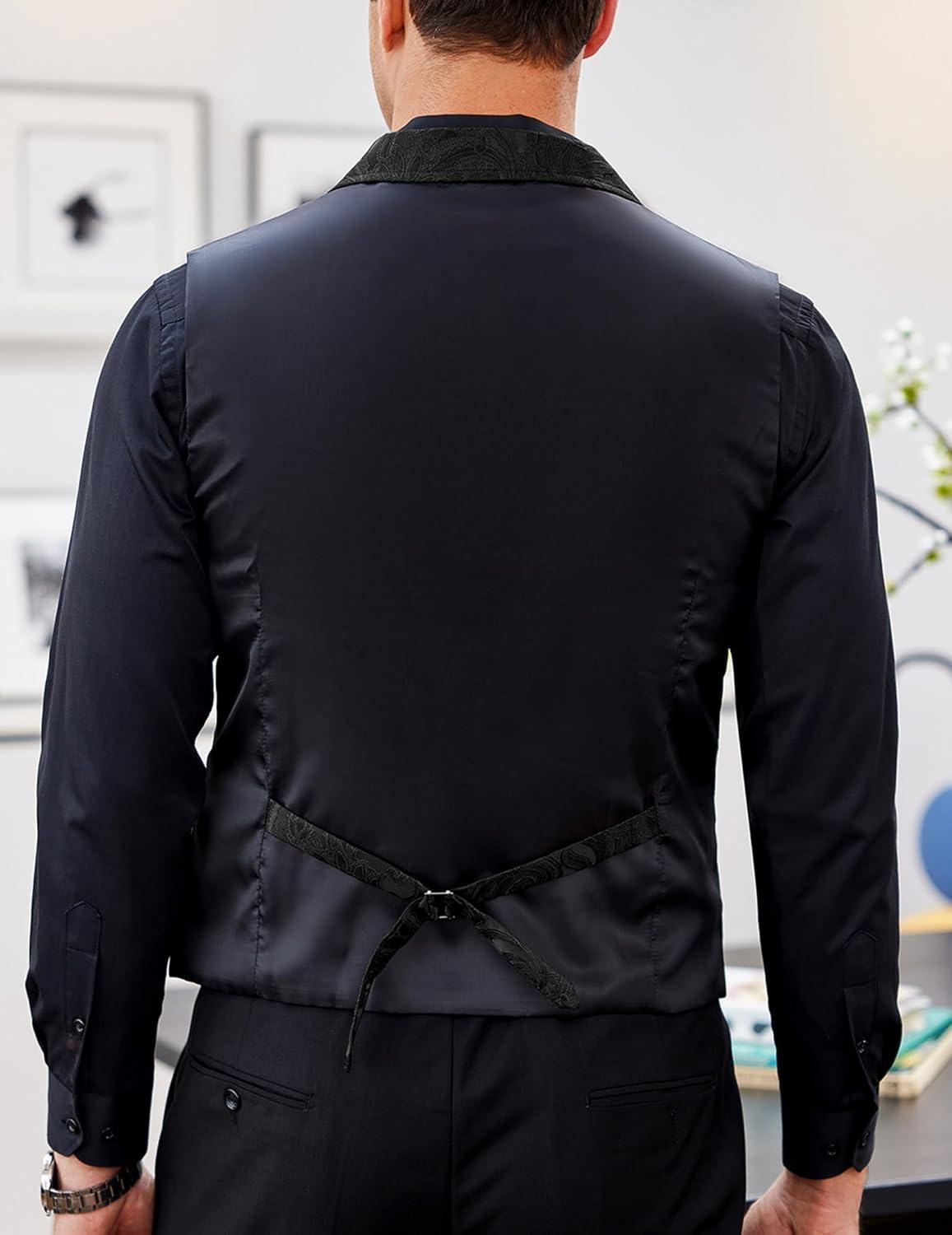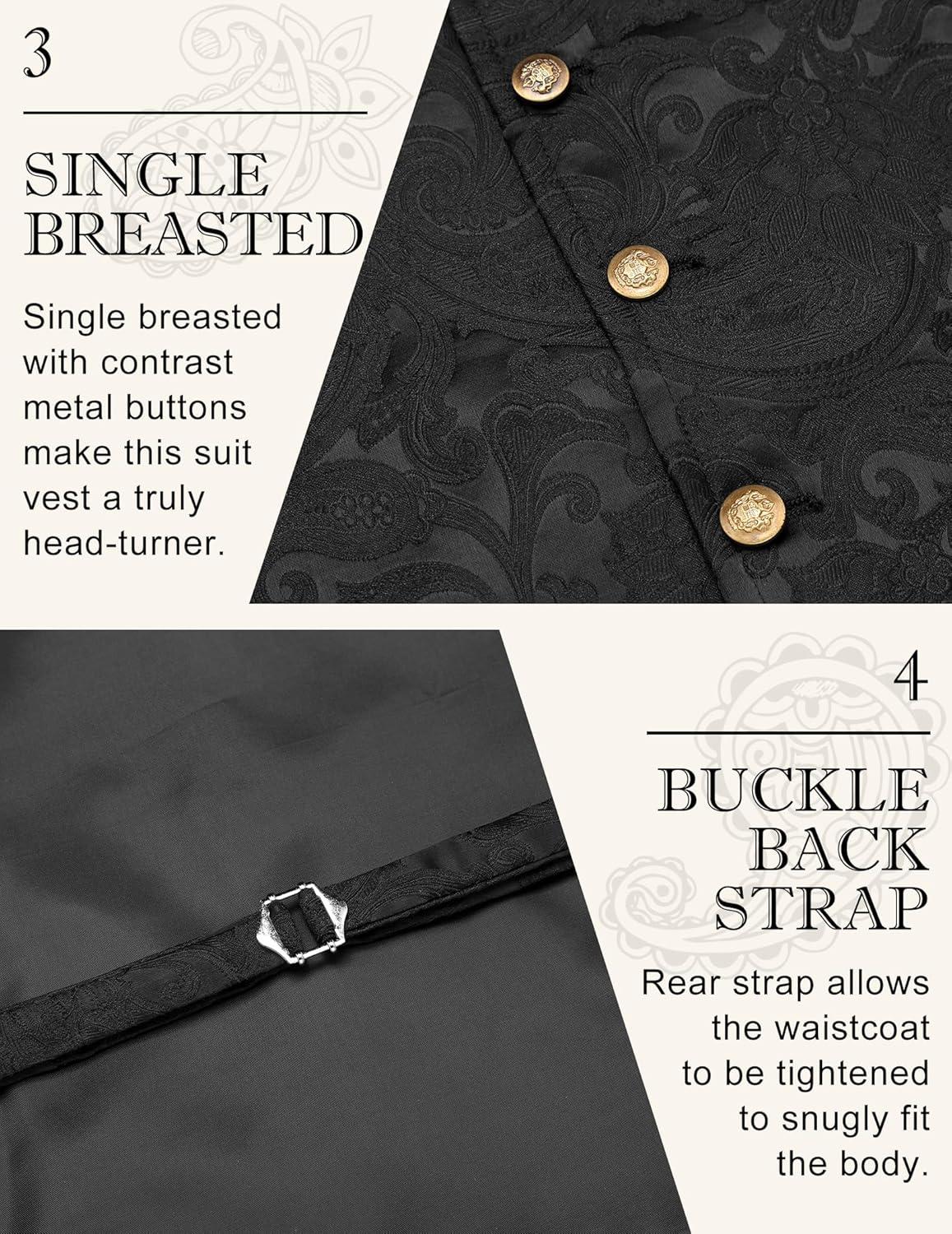 COOFANDY Black Suit Vest Men Paisley Floral Waistcoat Formal Tuxedo Suit Vests Gothic Steampunk Vest Black, X-Large