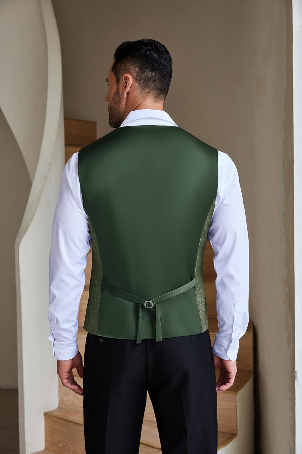 COOFANDY Men Casual Suit Vest Formal Dress Vest Slim Fit Waistcoat Business Wedding(Army Green)