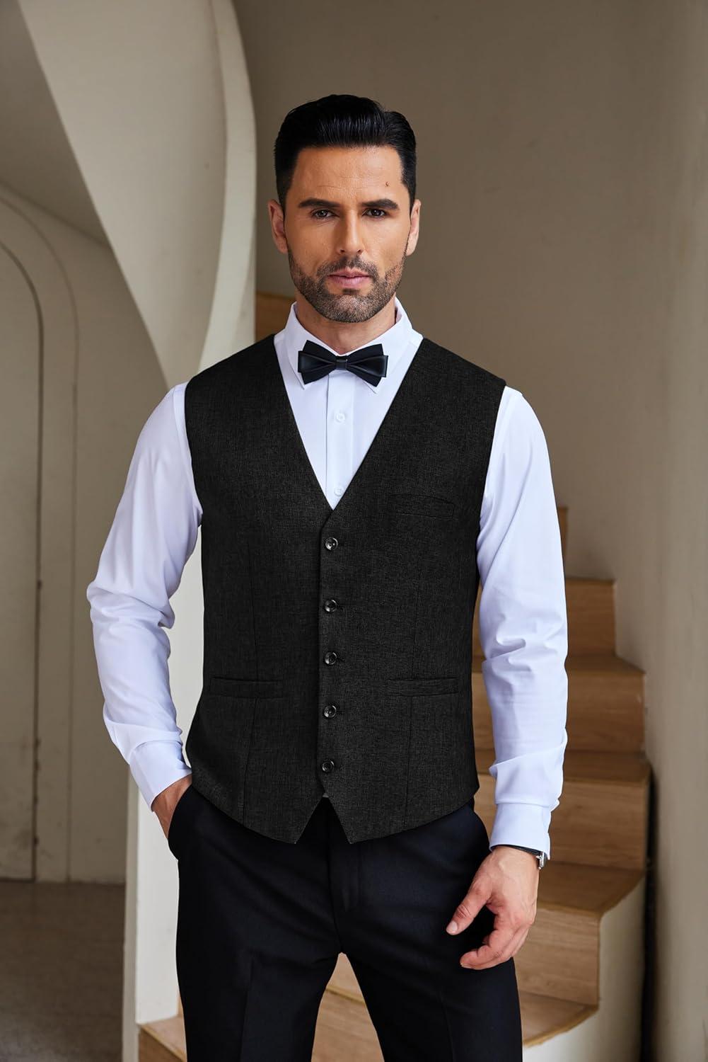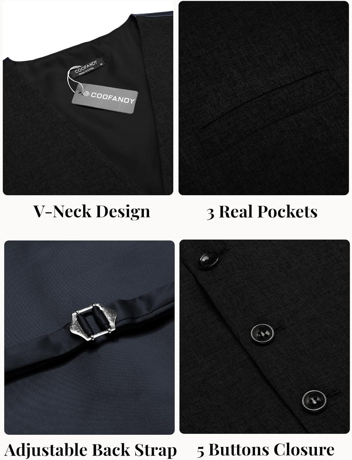 COOFANDY Men Casual Suit Vest Formal Dress Vest Slim Fit Waistcoat Business Wedding(Black)