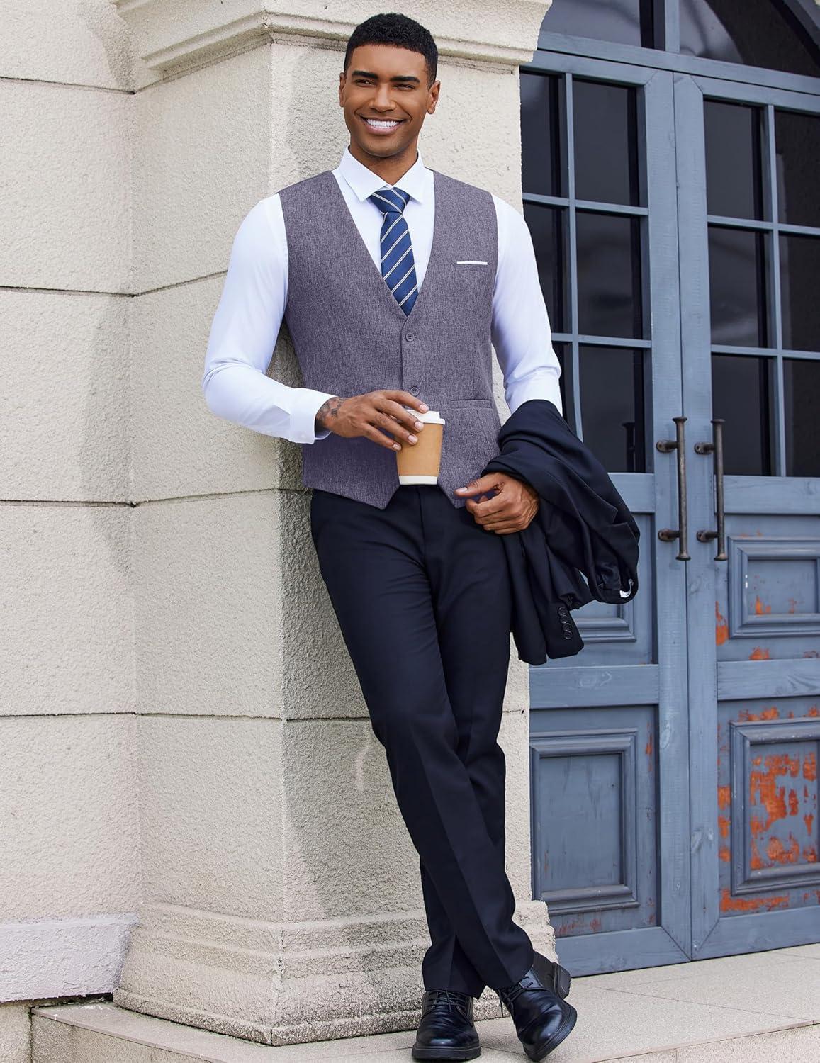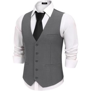 COOFANDY Men Casual Suit Vest Formal Dress Vest Slim Fit Waistcoat Business Wedding(Deep Grey)
