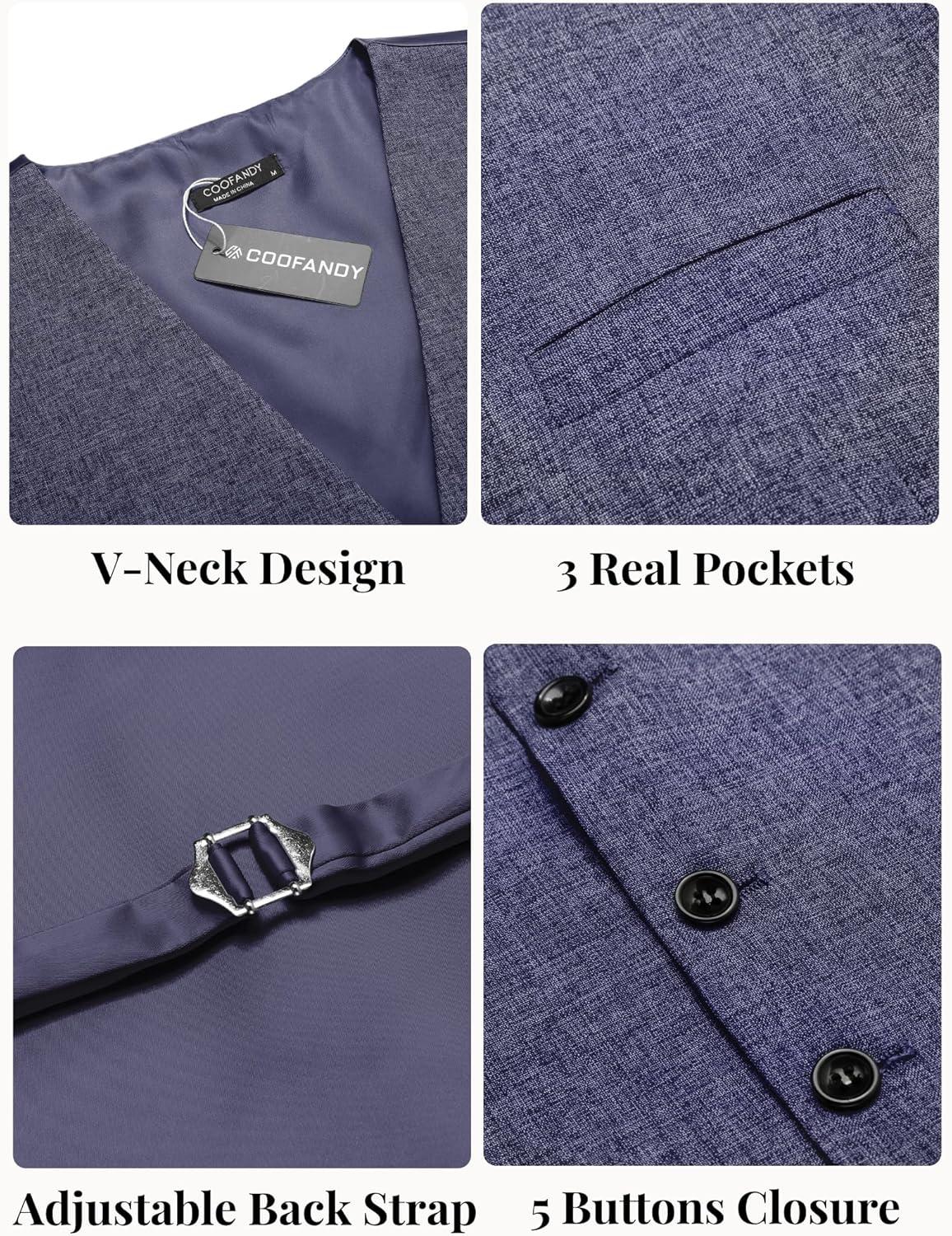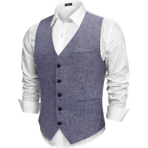 COOFANDY Men Casual Suit Vest Formal Dress Vest Slim Fit Waistcoat Business Wedding(Blue)