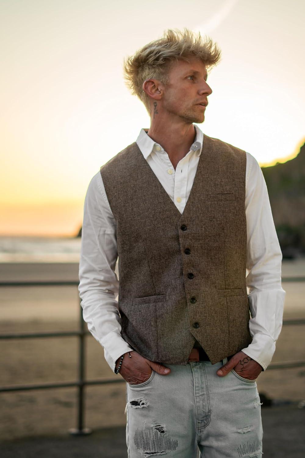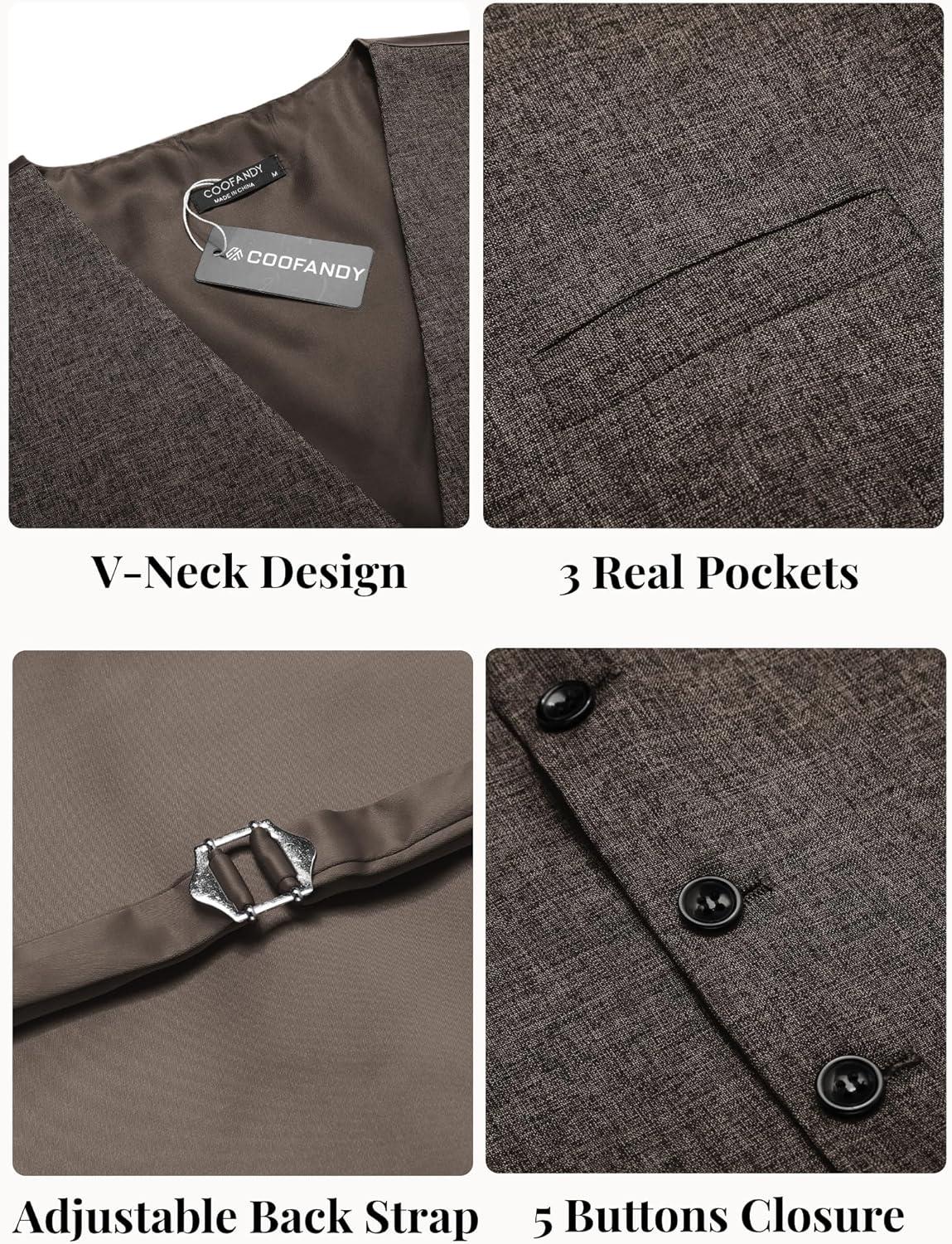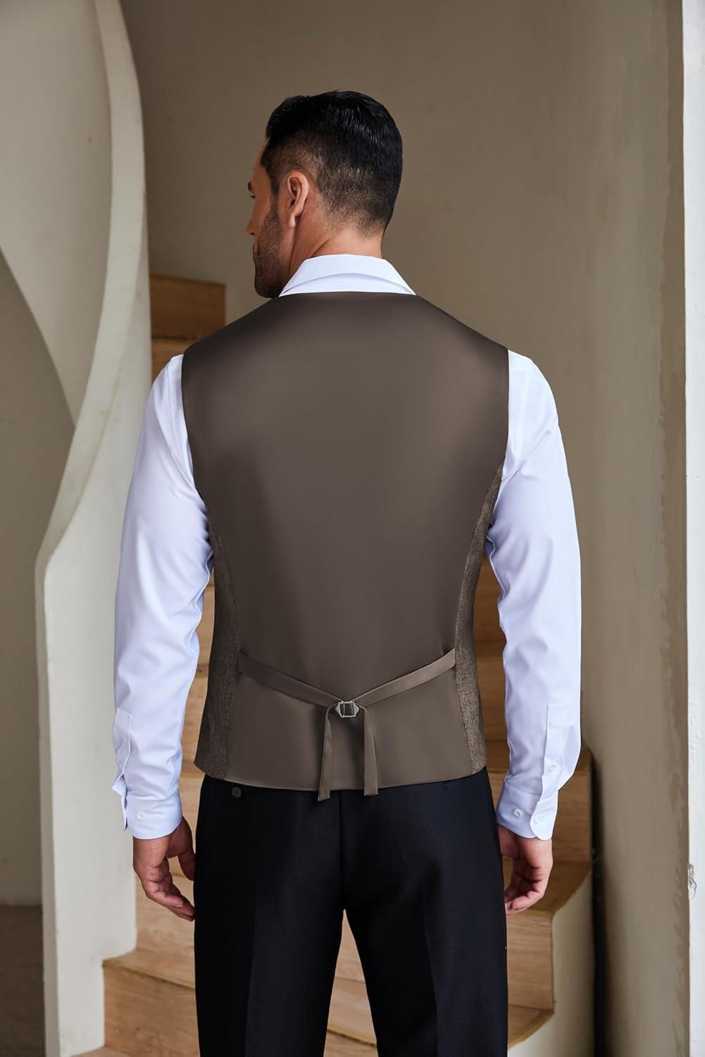 COOFANDY Men Casual Suit Vest Formal Dress Vest Slim Fit Waistcoat Business Wedding(Brown)