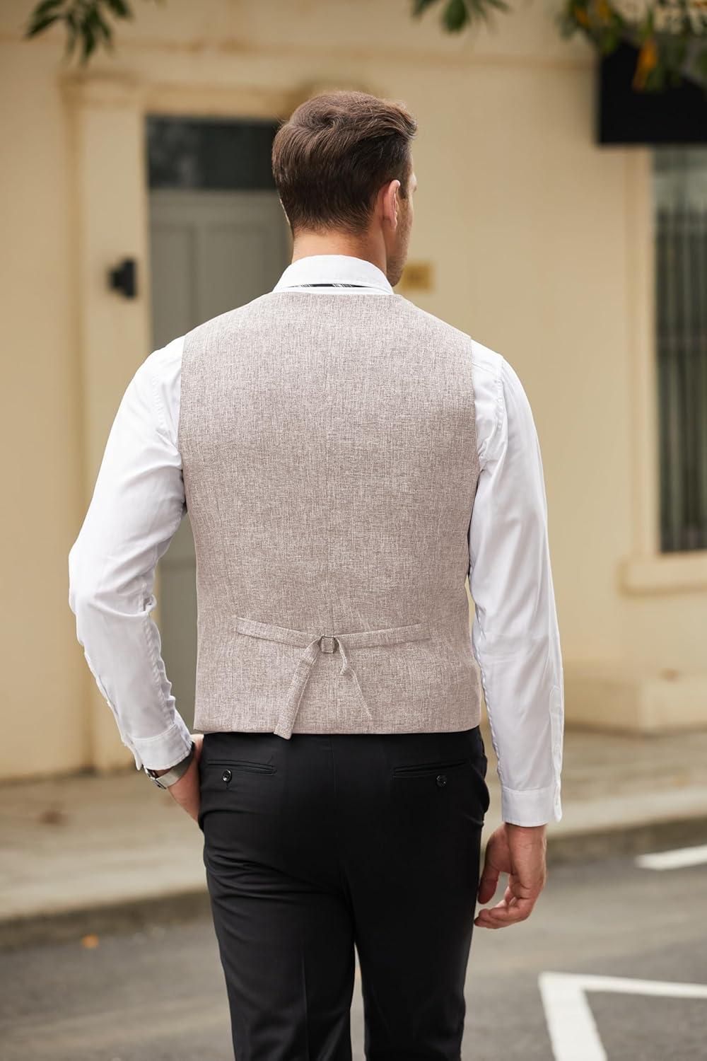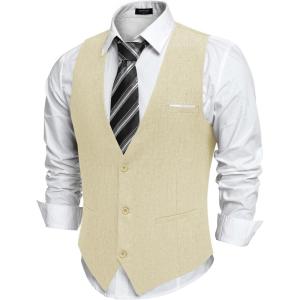 COOFANDY Men Casual Suit Vest Formal Dress Vest Slim Fit Waistcoat Business Wedding(Beige)