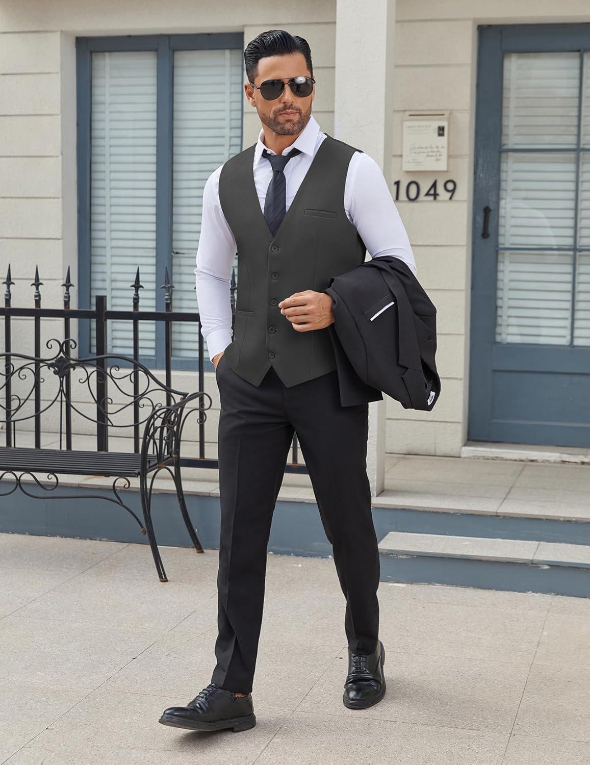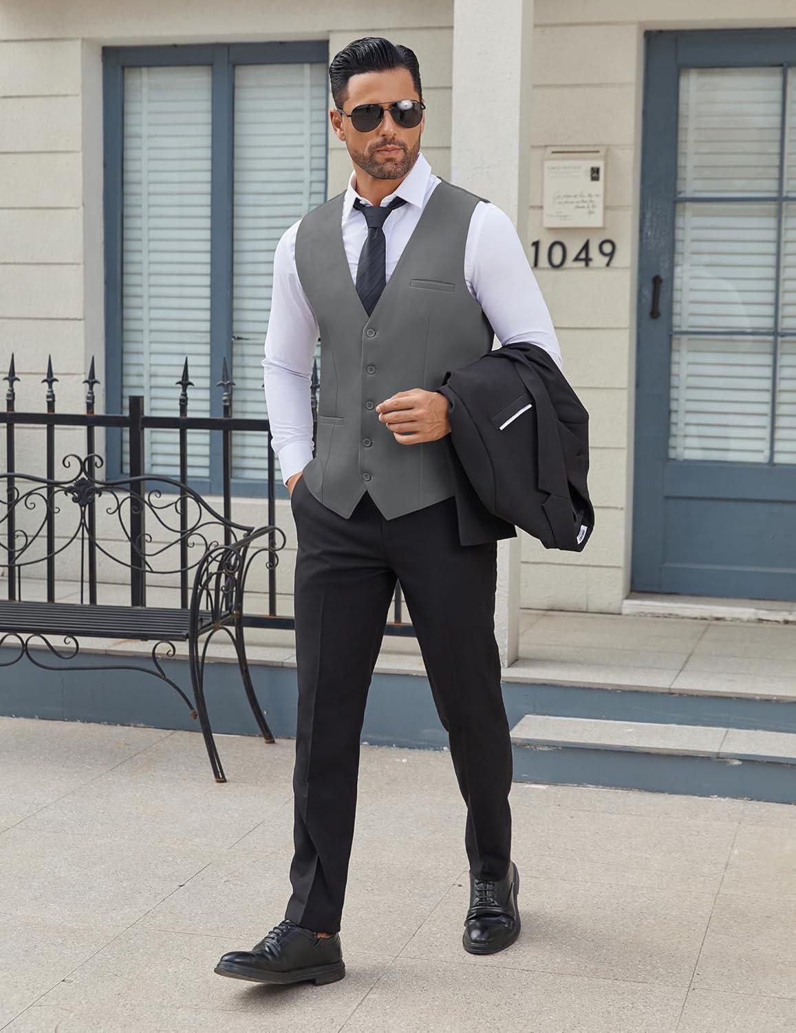 COOFANDY Men Casual Suit Vest Formal Dress Vest Slim Fit Waistcoat Business Wedding(Charcoal Gray)