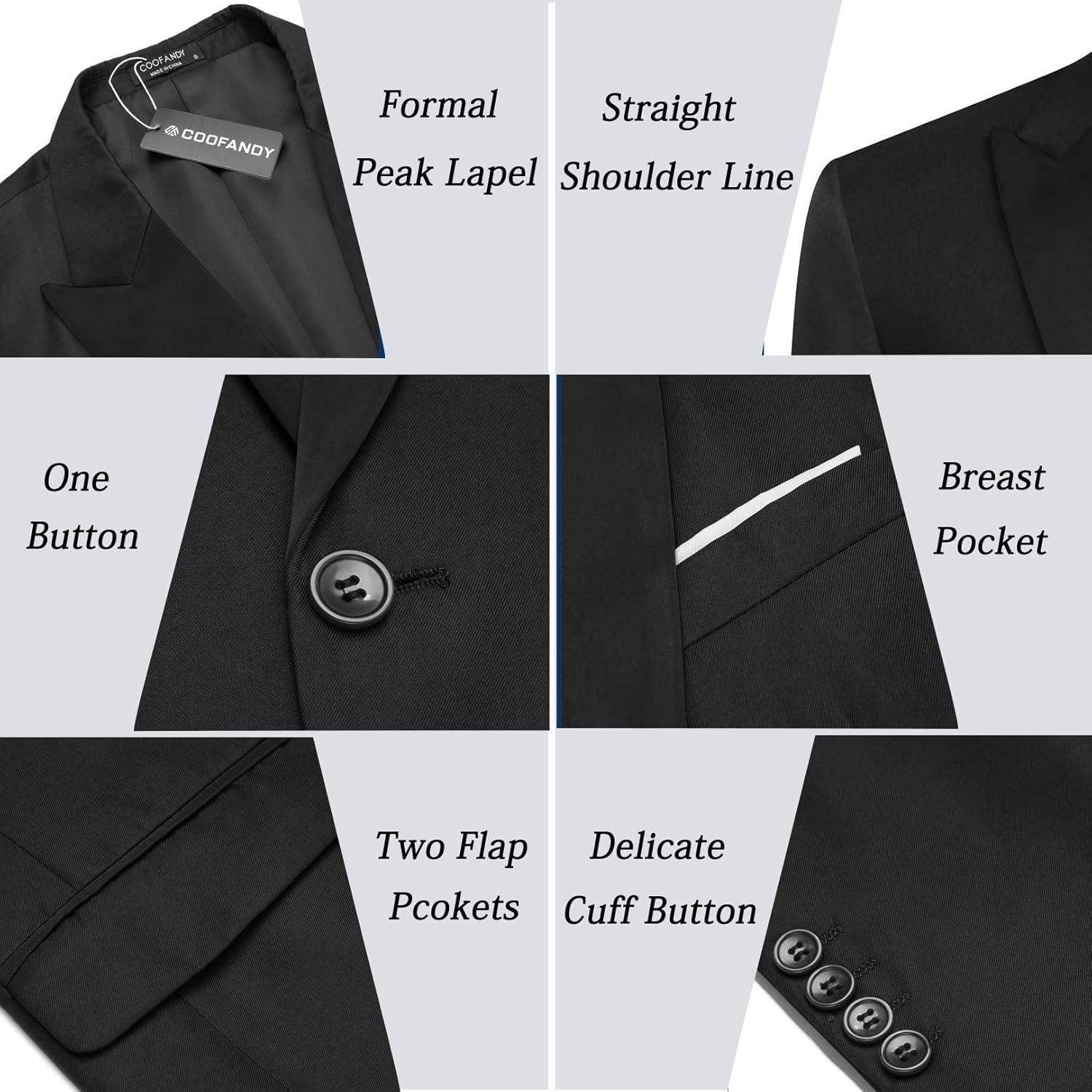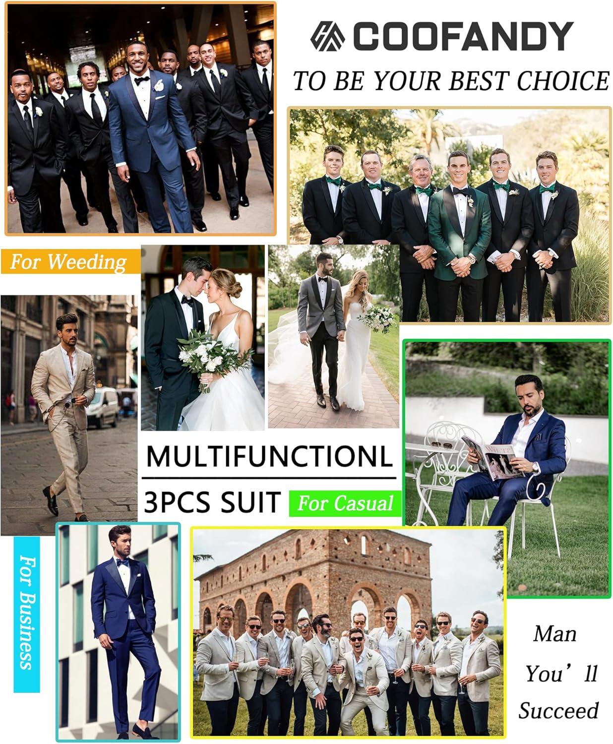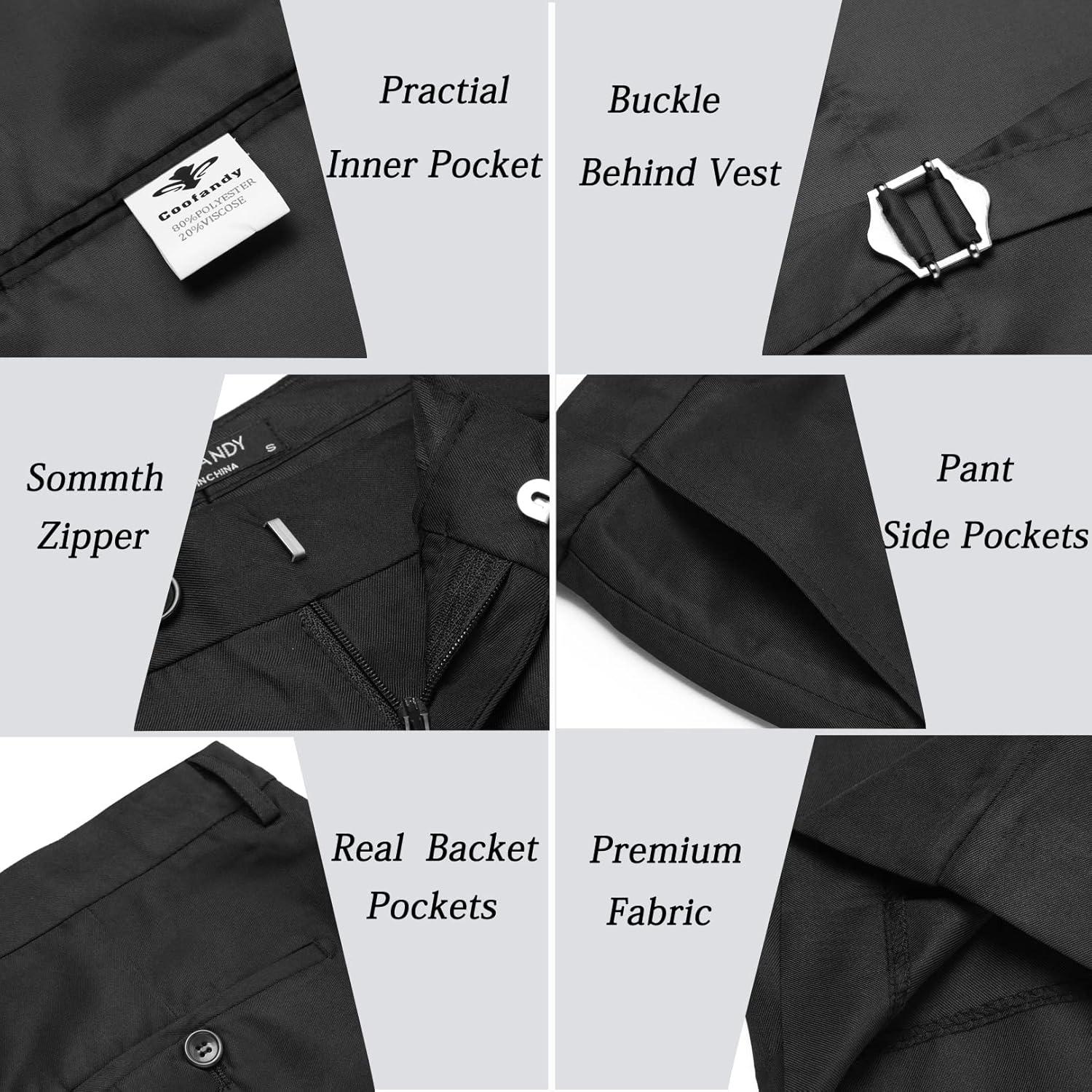 COOFANDY Men 3 Piece Suit Slim Fit Tuxedo One Button Prom Suits Blazer Jacket Vest Pants with Tie(Black)