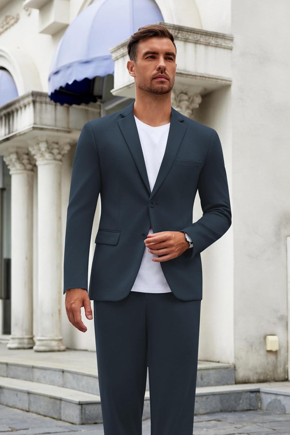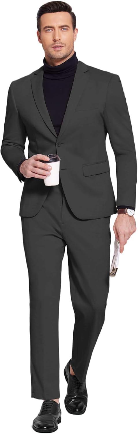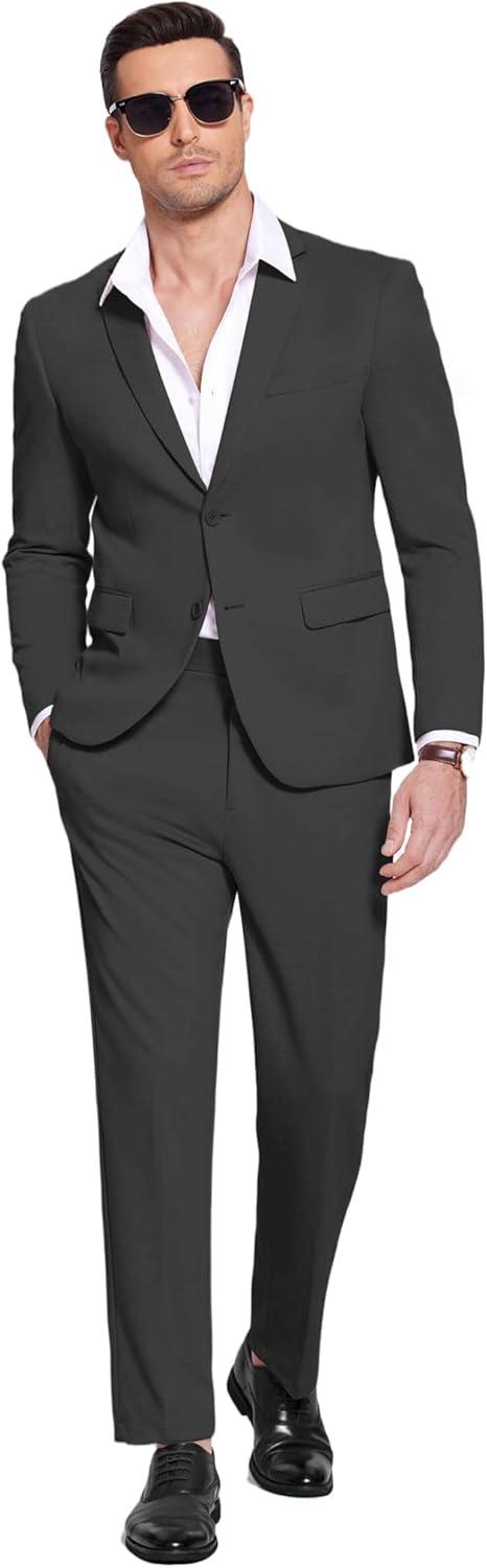 COOFANDY Men’s Suits 2 Piece Slim Fit Suit Set 2 Button Lightweight Casual Knit Blazer Suit Jacket Pants(Drak Grey)