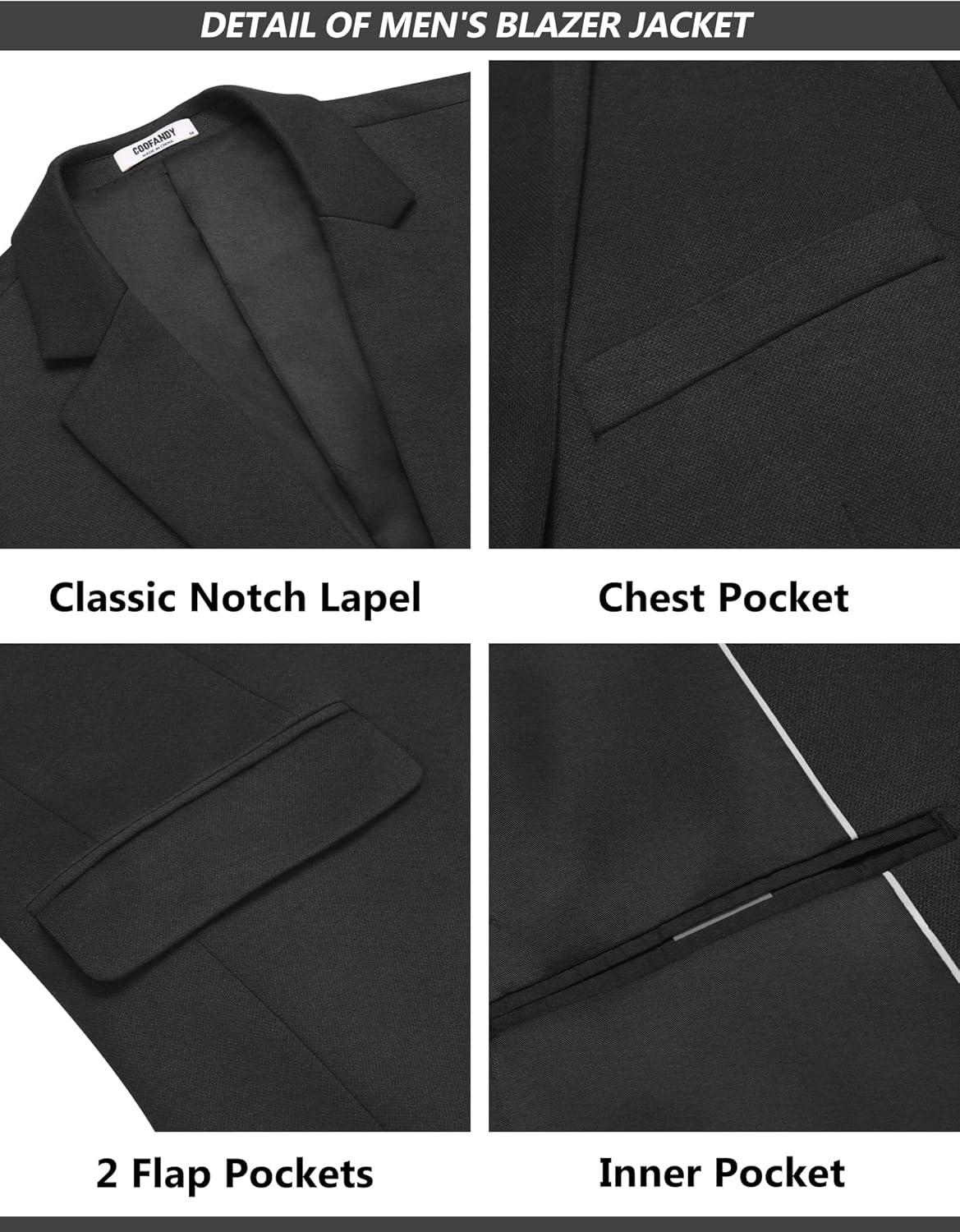 COOFANDY Men’s Suits 2 Piece Slim Fit Suit Set 2 Button Lightweight Casual Knit Blazer Suit Jacket Pants(Black)