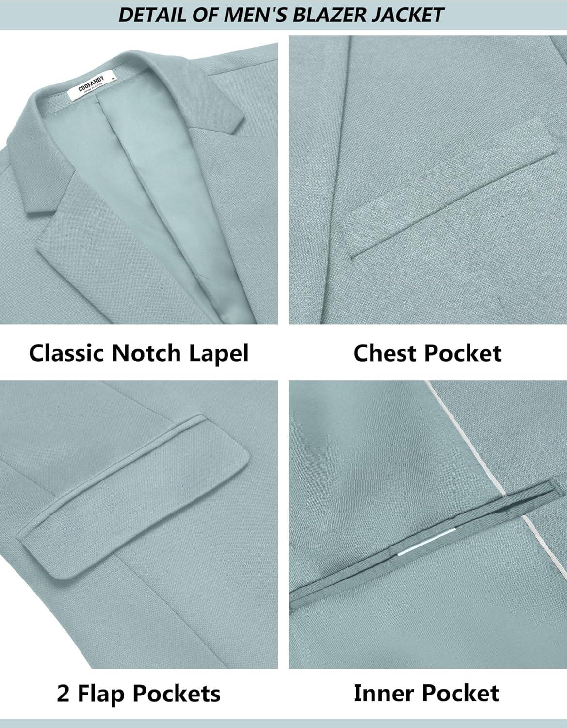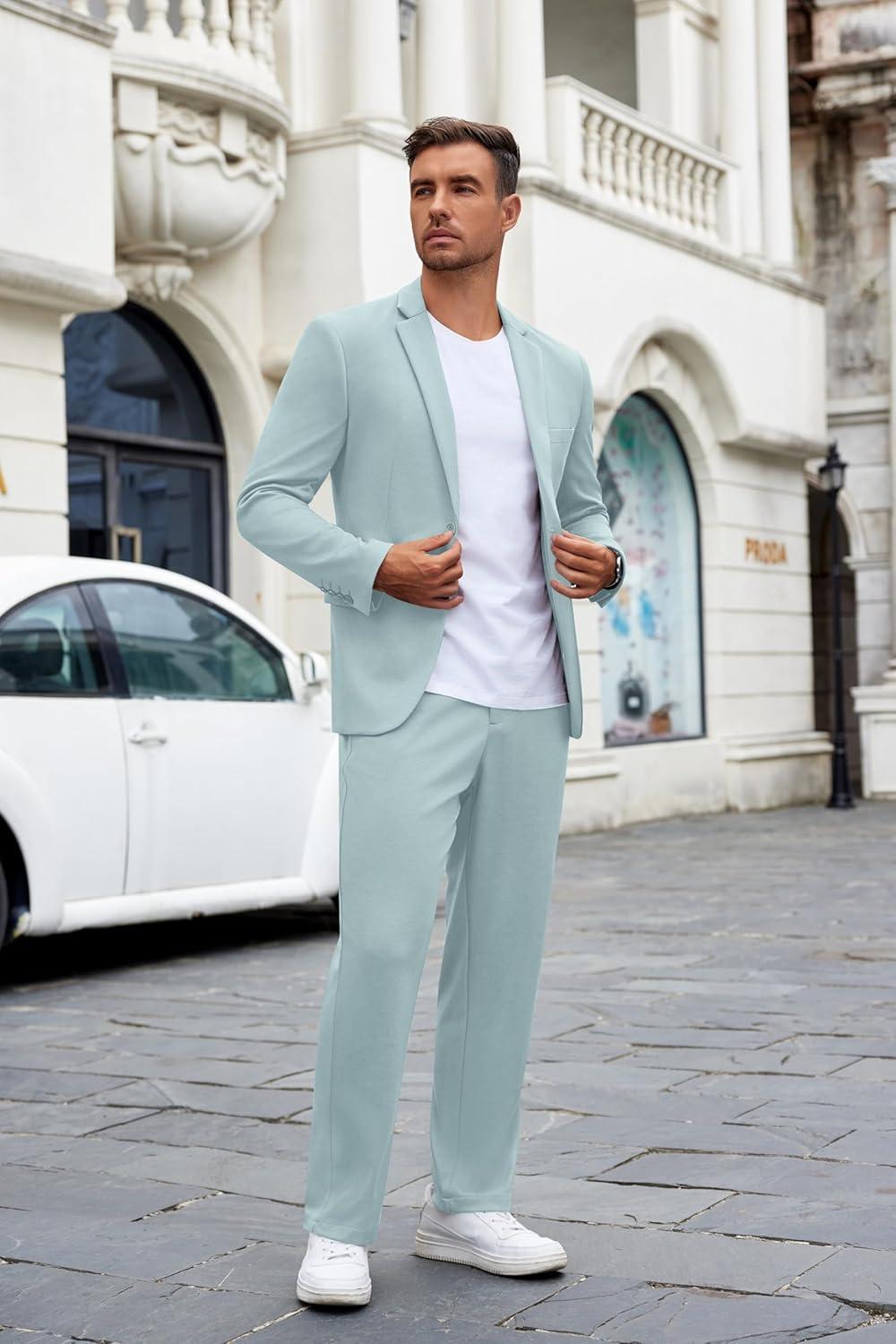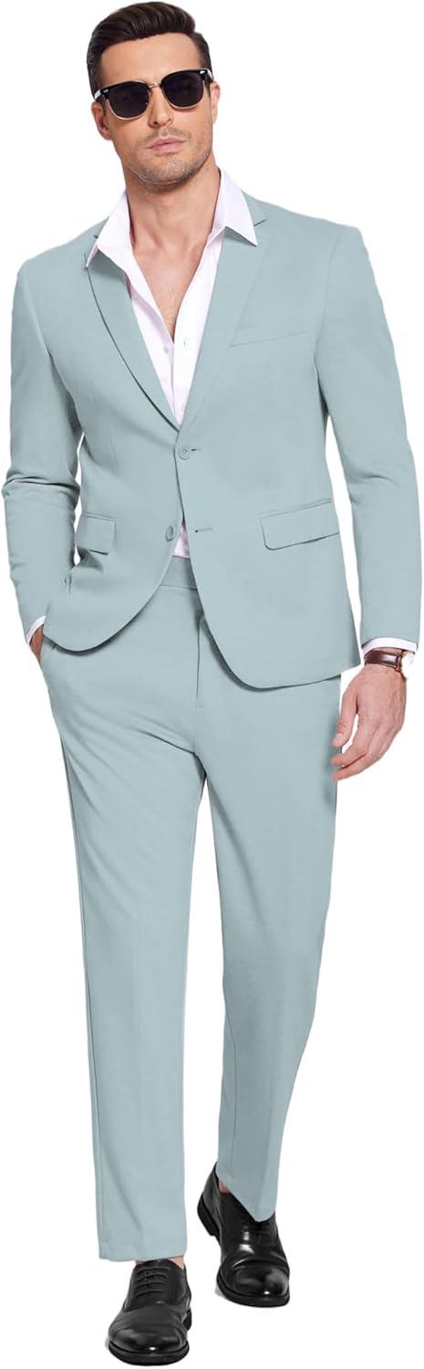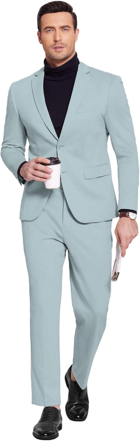 COOFANDY Men’s Suits 2 Piece Slim Fit Suit Set 2 Button Lightweight Casual Knit Blazer Suit Jacket Pants(Light Blue)