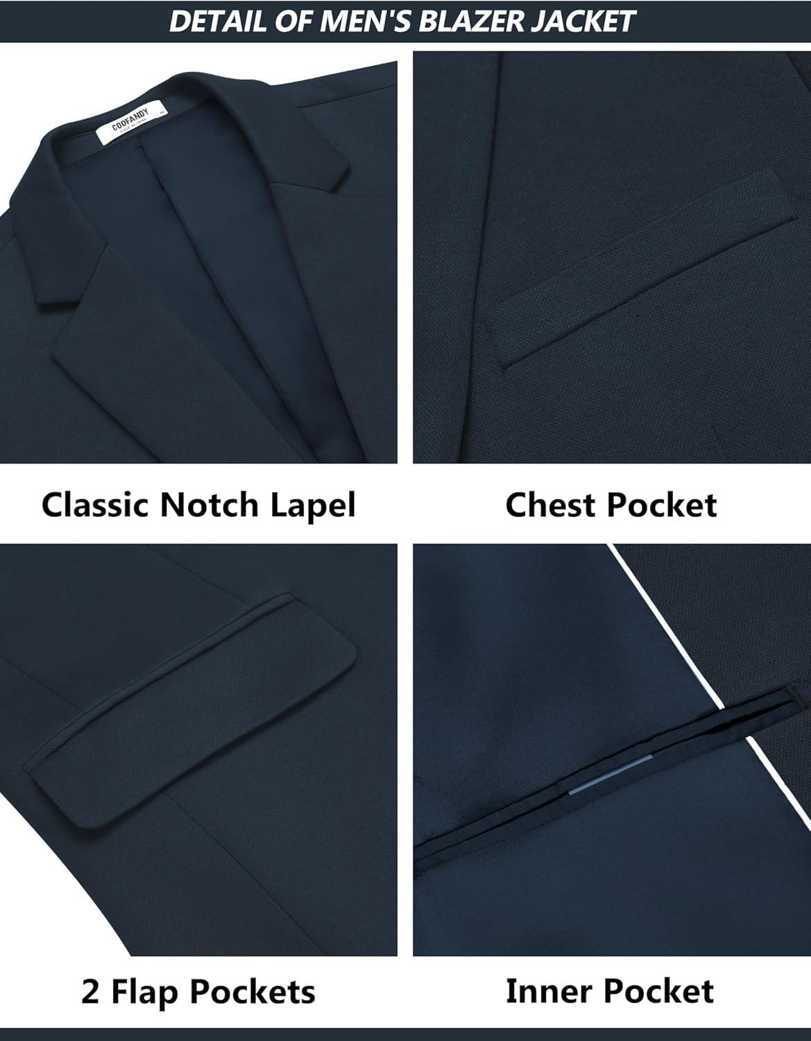 COOFANDY Men’s 2 Piece Suit Slim Fit One Button Tuxedo Jacket Pants for Wedding Prom Business(Navy Blue)