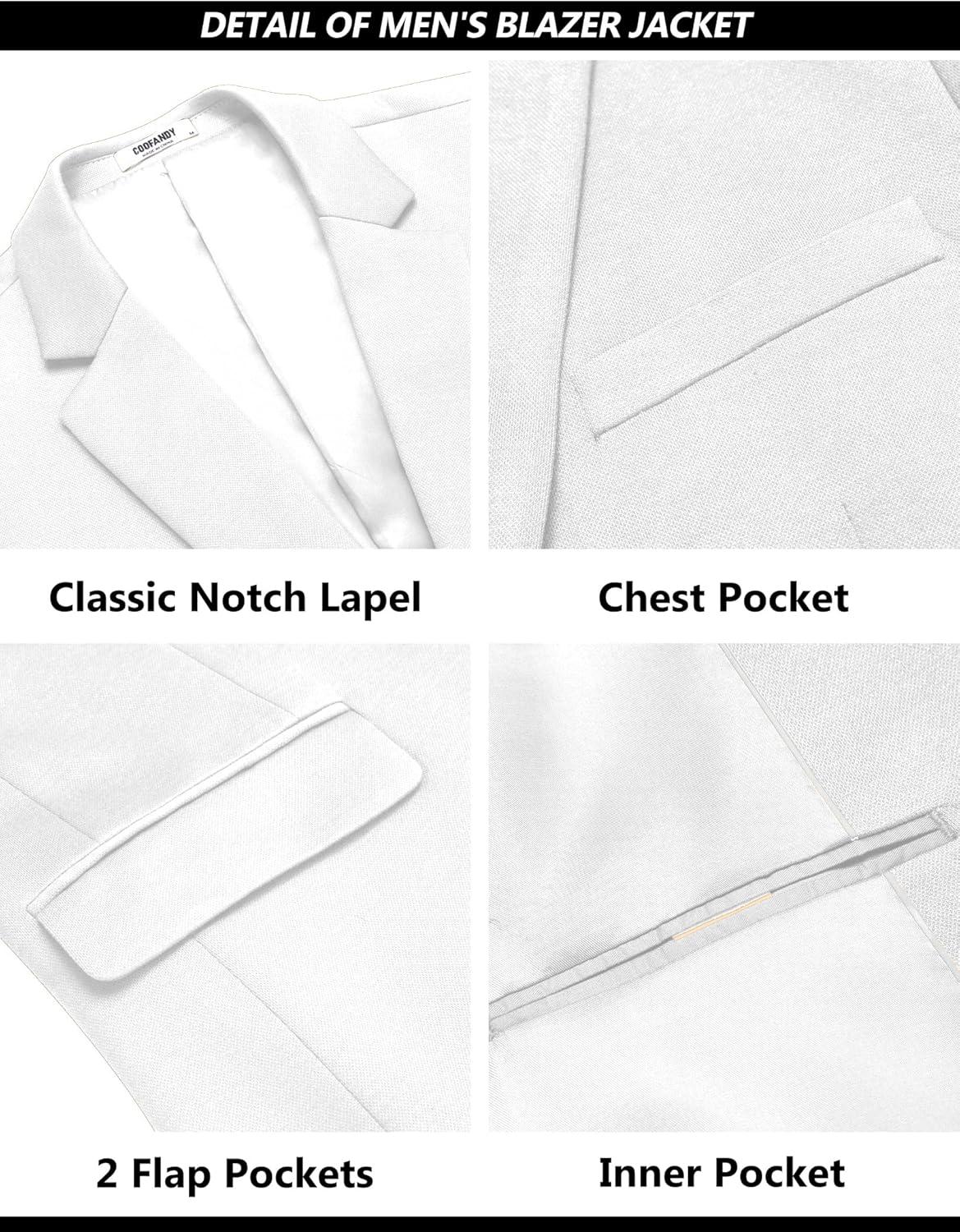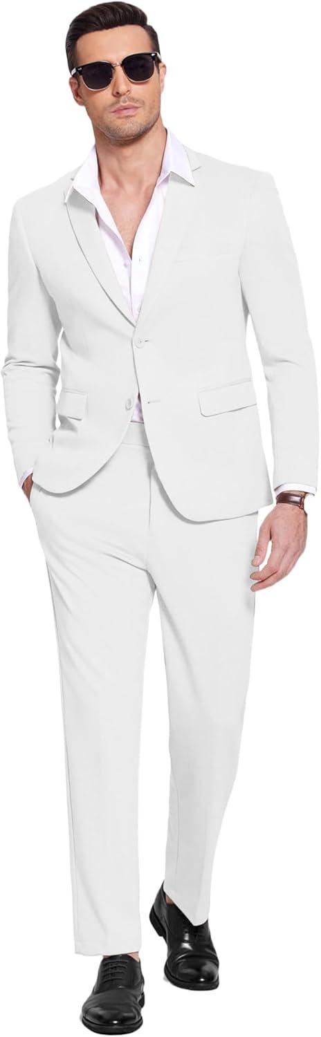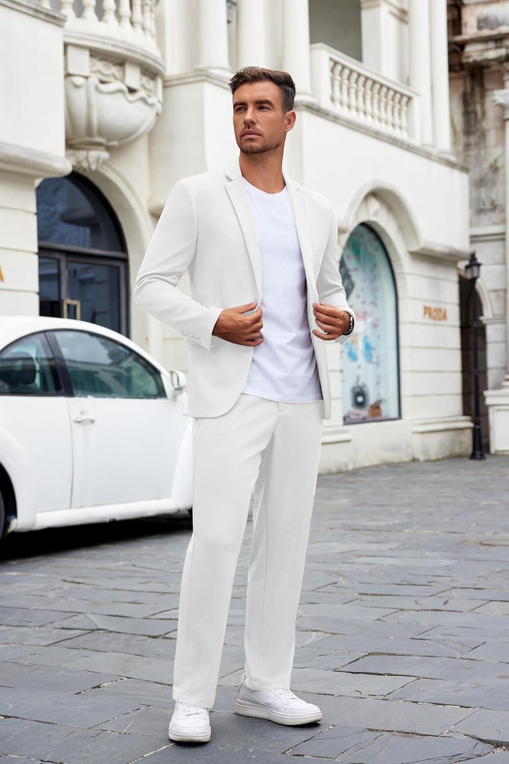 COOFANDY Men’s Suits 2 Piece Slim Fit Suit Set 2 Button Lightweight Casual Knit Blazer Suit Jacket Pants(White)