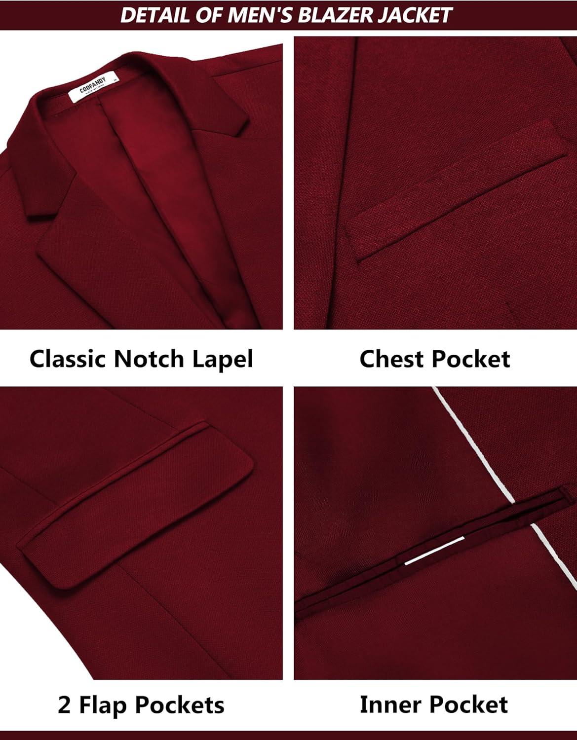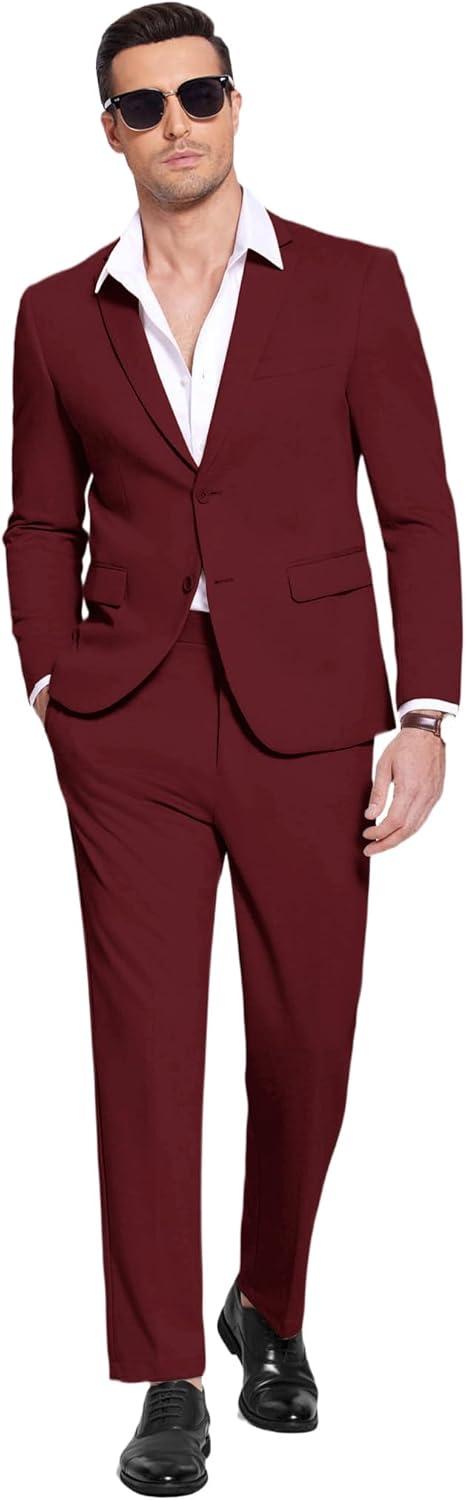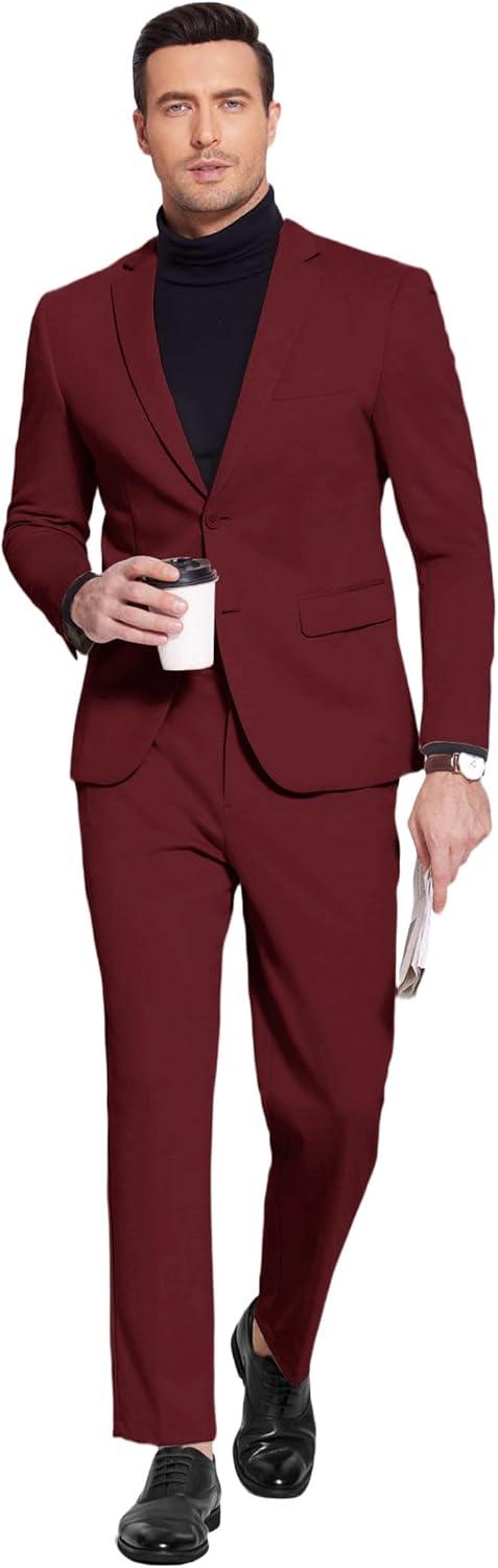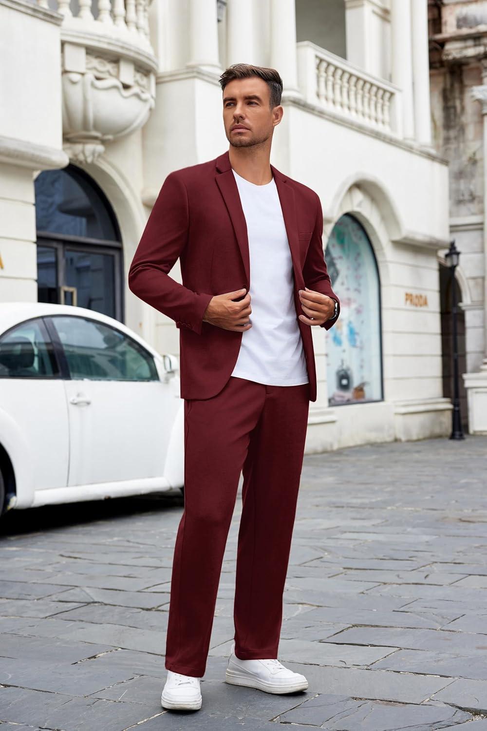 COOFANDY Men’s Suits 2 Piece Slim Fit Suit Set 2 Button Lightweight Casual Knit Blazer Suit Jacket Pants(Wine Red)