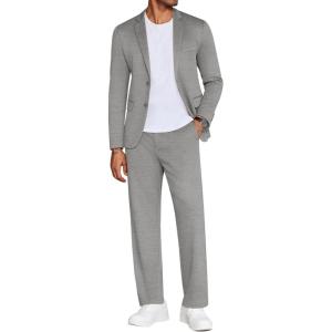 COOFANDY Men’s Suits 2 Piece Slim Fit Suit Set 2 Button Lightweight Casual Knit Blazer Suit Jacket Pants(Light Grey)