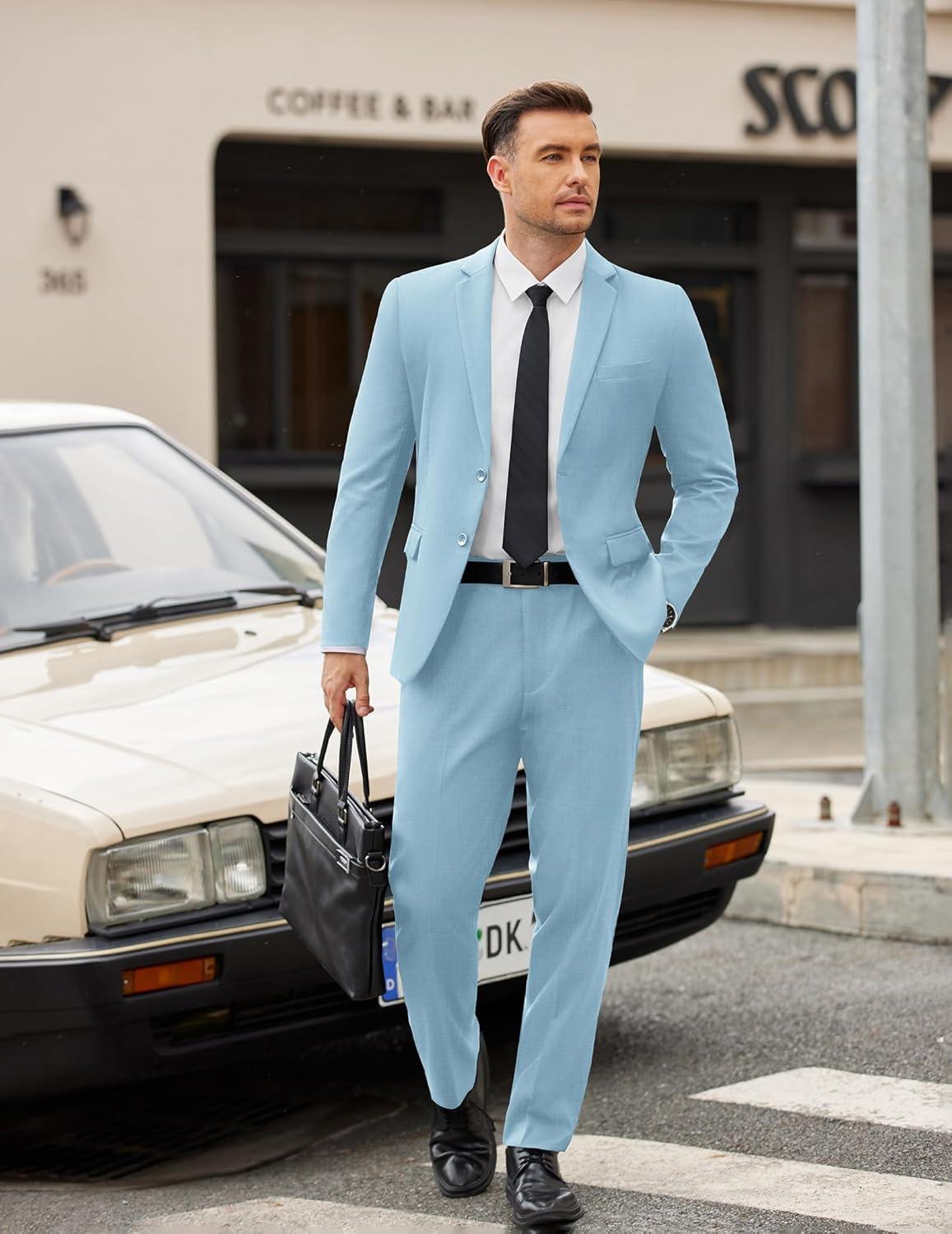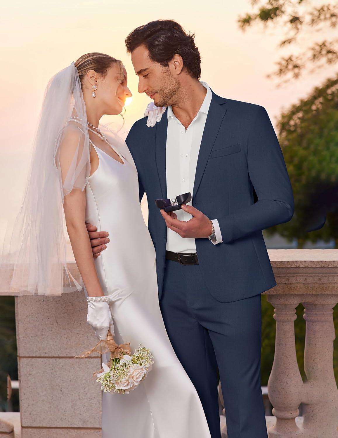 COOFANDY Men’s 2 Piece Suits Slim Fit Two Buttons Casual Blazer Jacket and Pants Set Tuxedo Suit for Wedding Prom Business(Dark Blue)