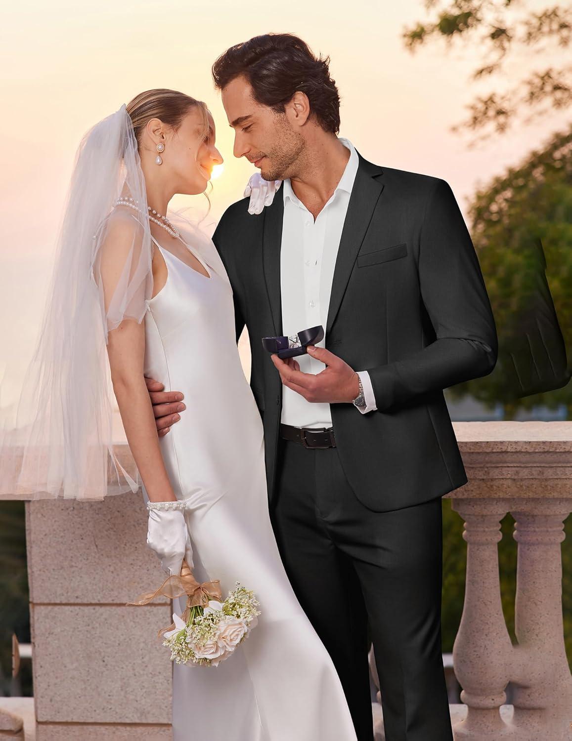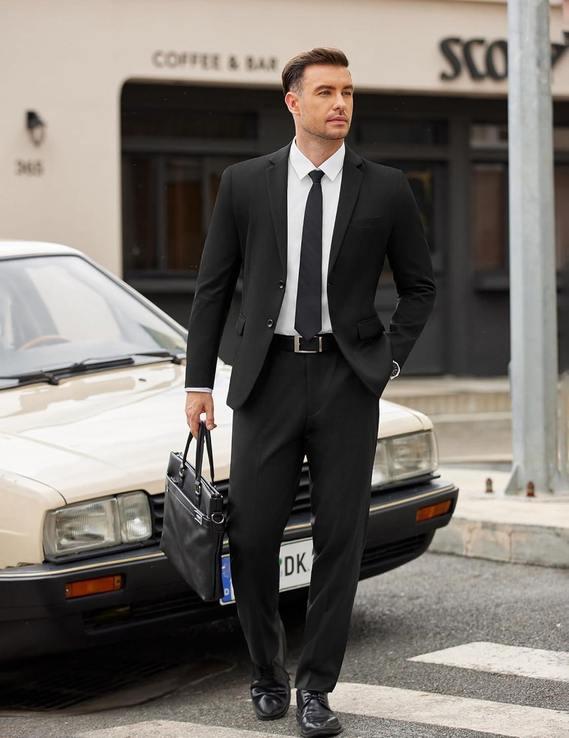 COOFANDY Men’s 2 Piece Suits Slim Fit Two Buttons Casual Blazer Jacket and Pants Set Tuxedo Suit for Wedding Prom Business(Black)