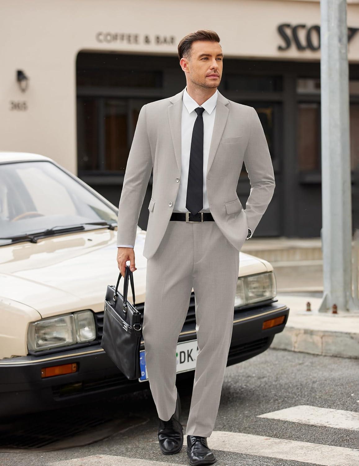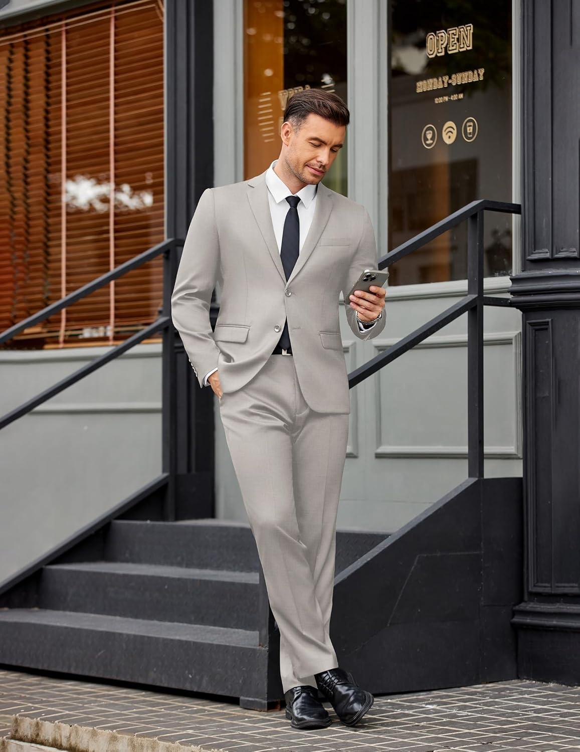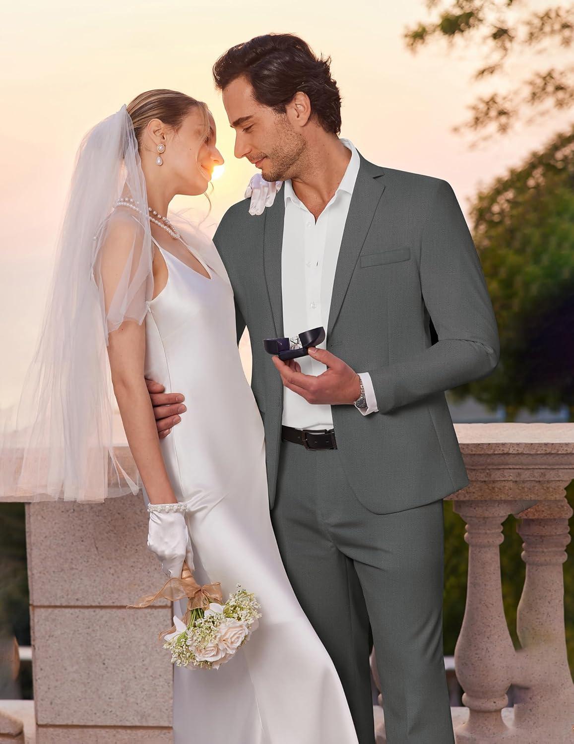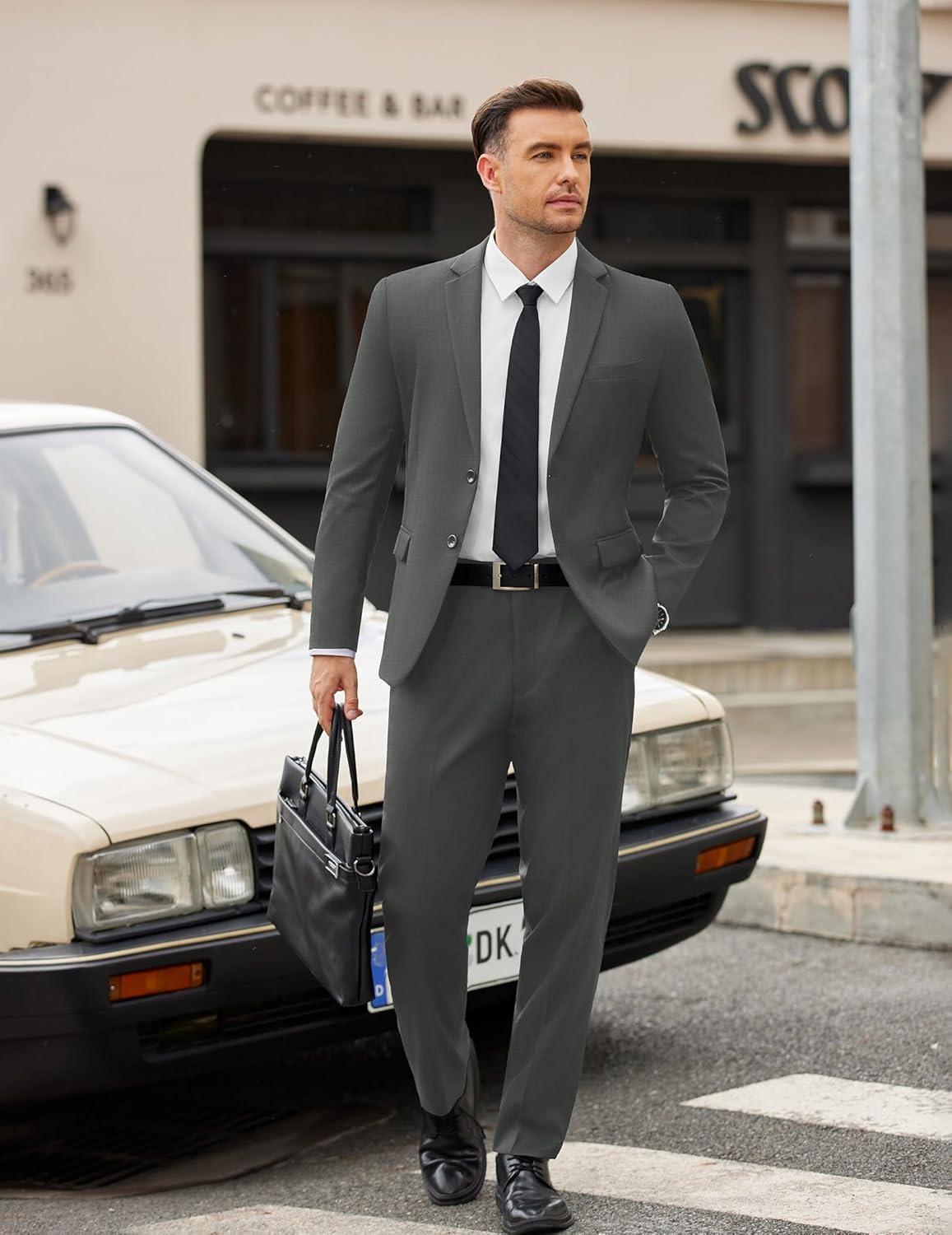 COOFANDY Men’s 2 Piece Suits Slim Fit Two Buttons Casual Blazer Jacket and Pants Set Tuxedo Suit for Wedding Prom Business(Dark Gray)