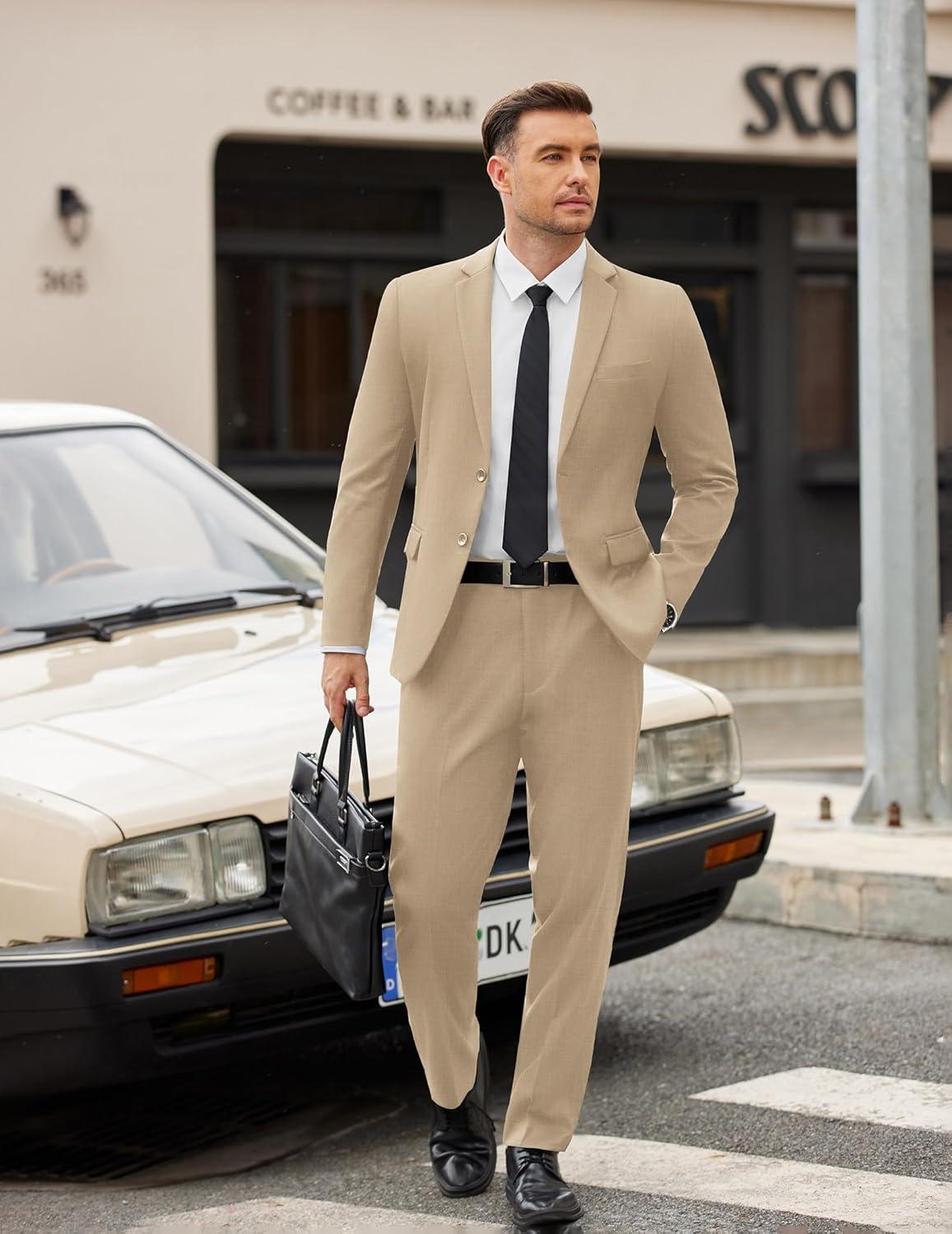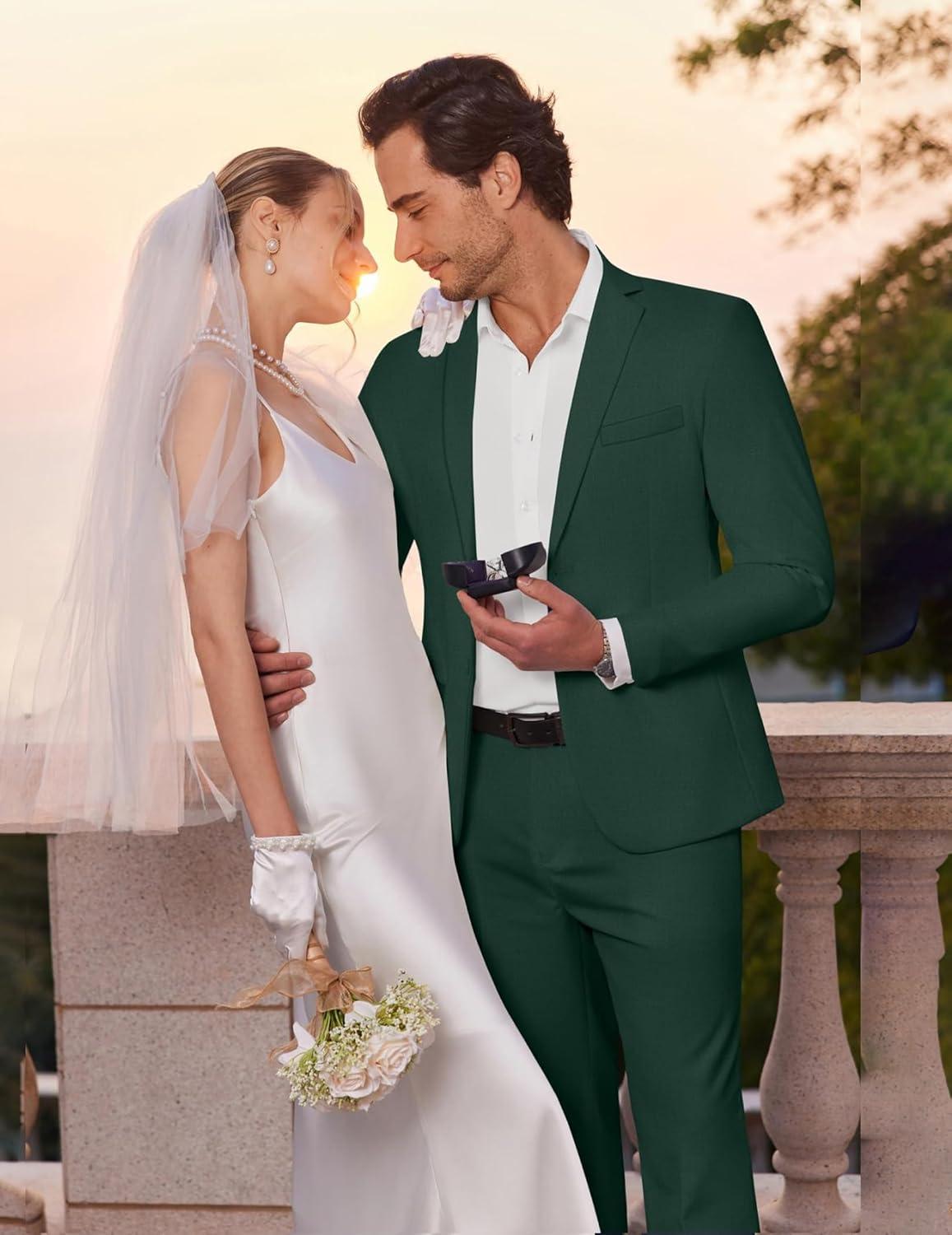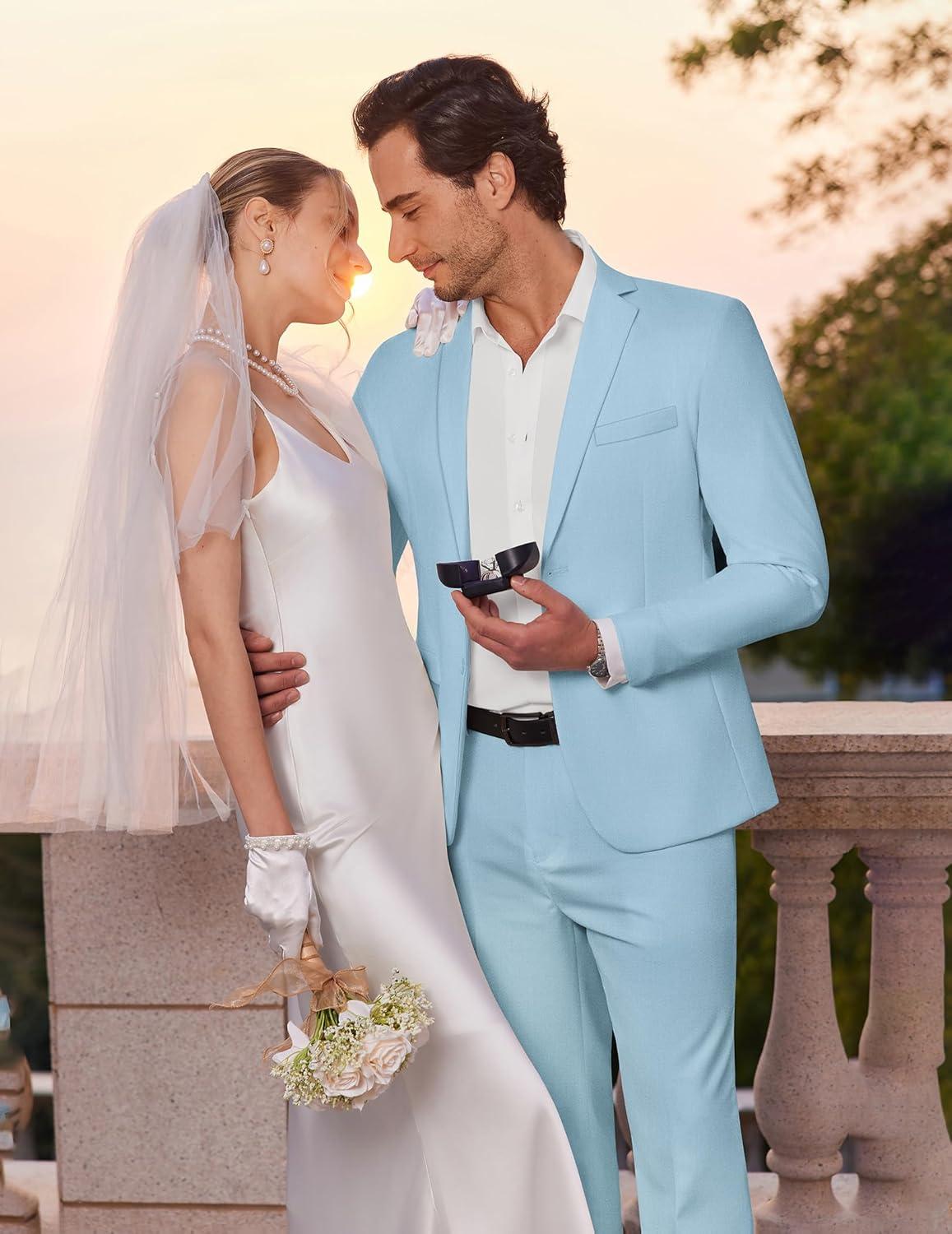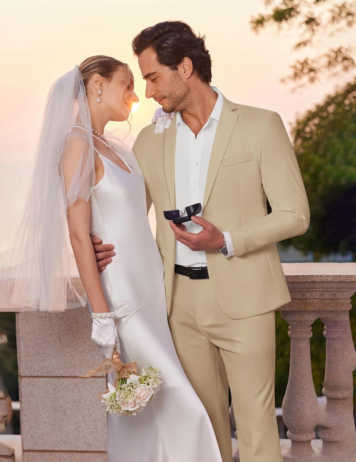 COOFANDY Men’s 2 Piece Suits Slim Fit Two Buttons Casual Blazer Jacket and Pants Set Tuxedo Suit for Wedding Prom Business(White)