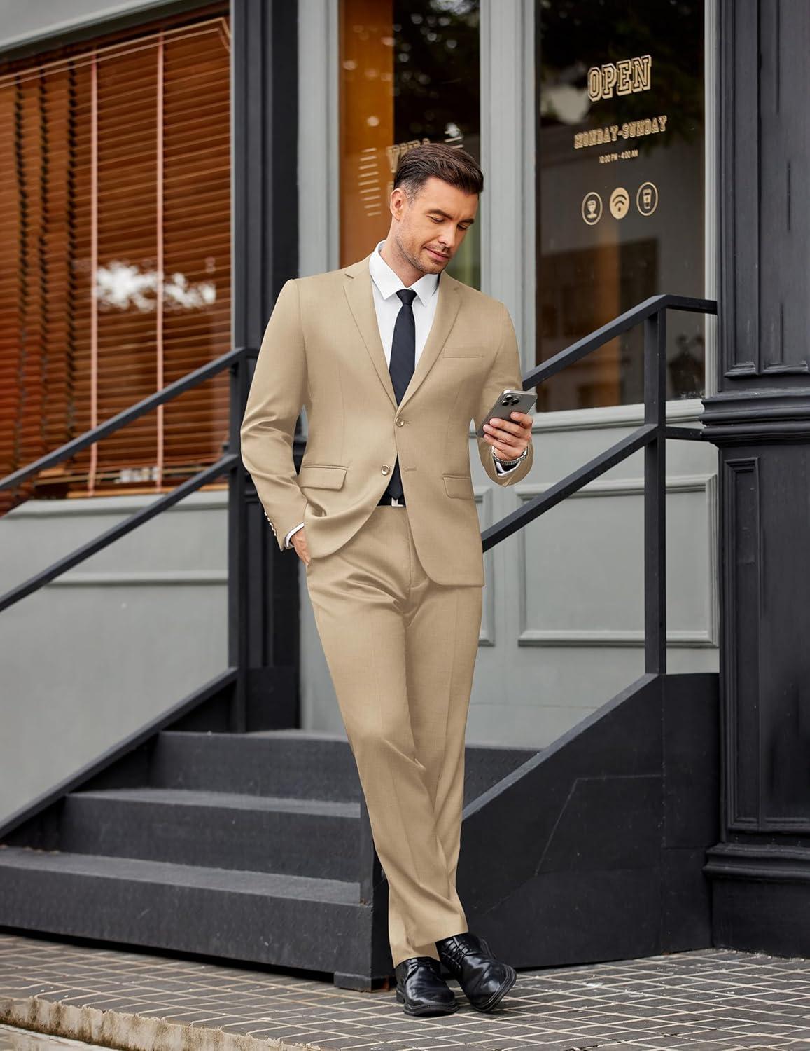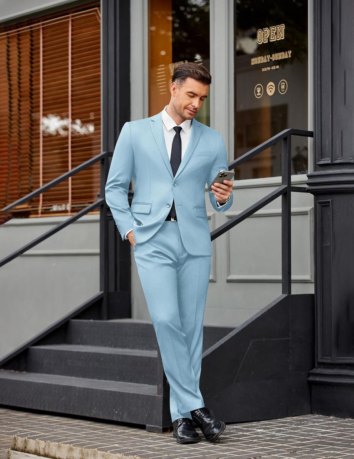 COOFANDY Men’s 2 Piece Suits Slim Fit Two Buttons Casual Blazer Jacket and Pants Set Tuxedo Suit for Wedding Prom Business(Navy Blue)
