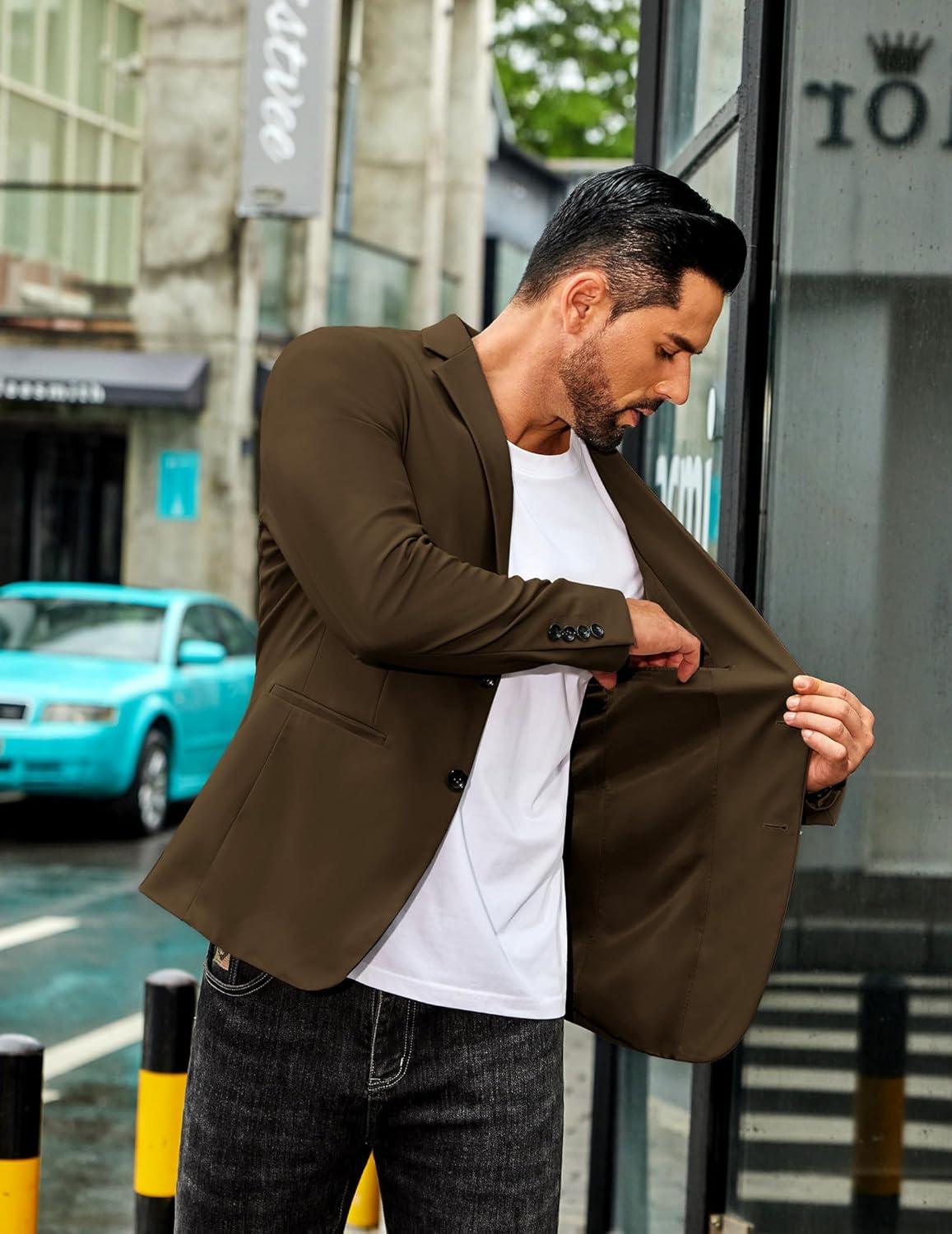 COOFANDY Men’s Casual Regular Fit Blazer Jacket Two Button Suit Jackets Lightweight Sport Coat(Brown)