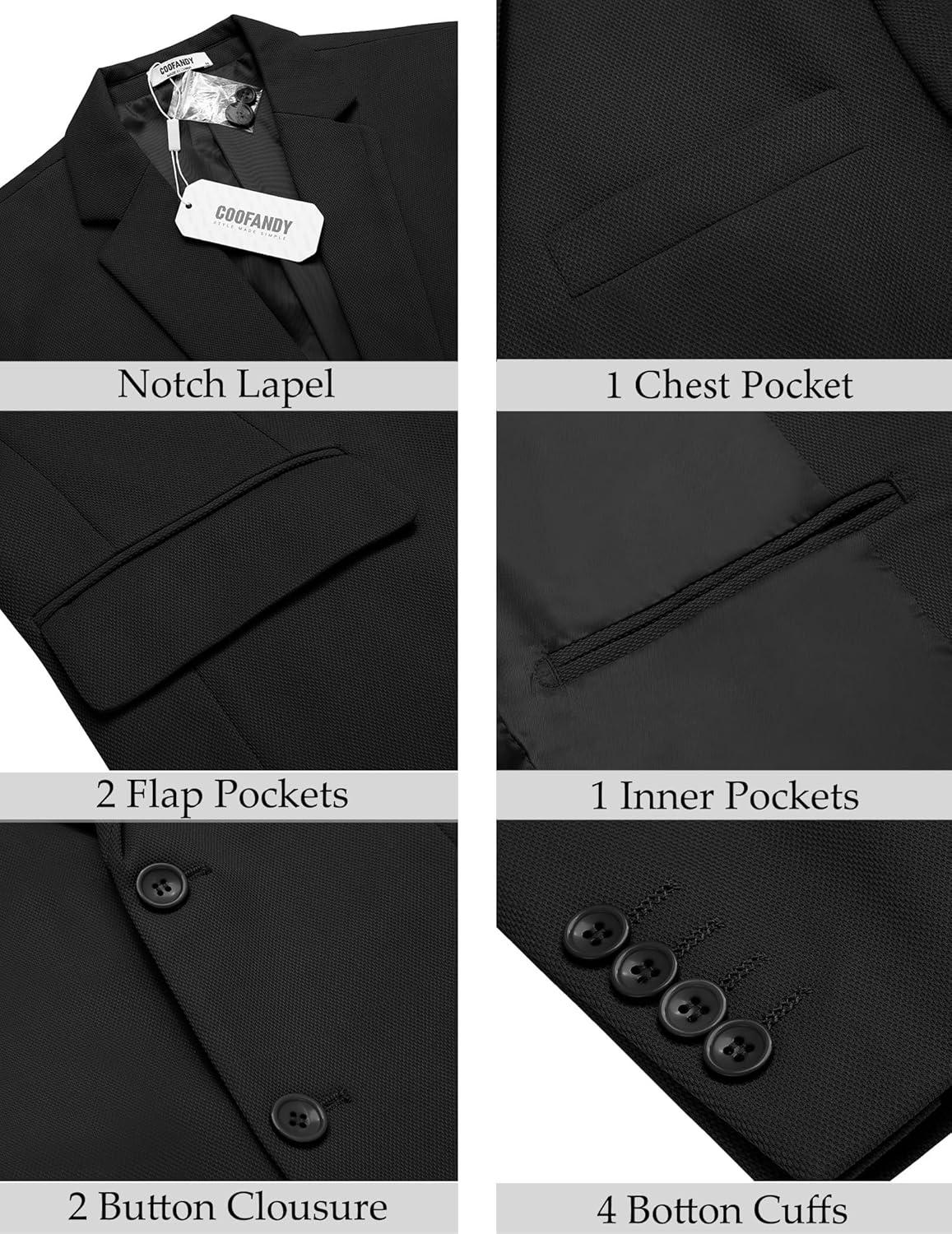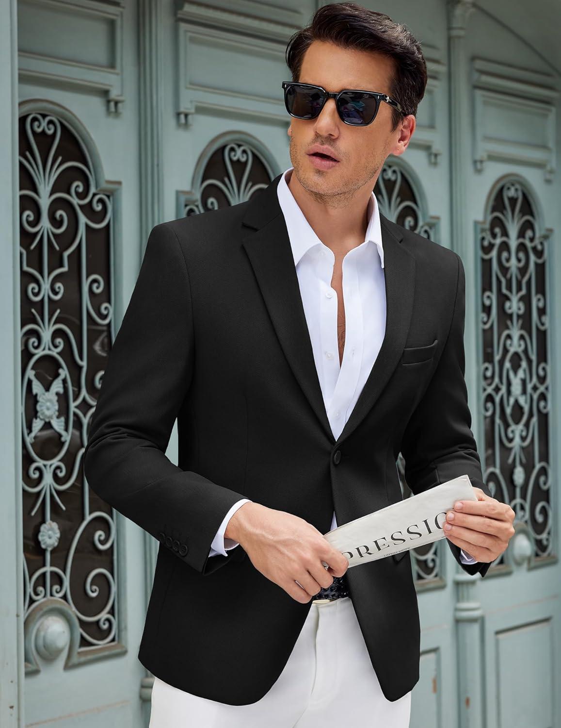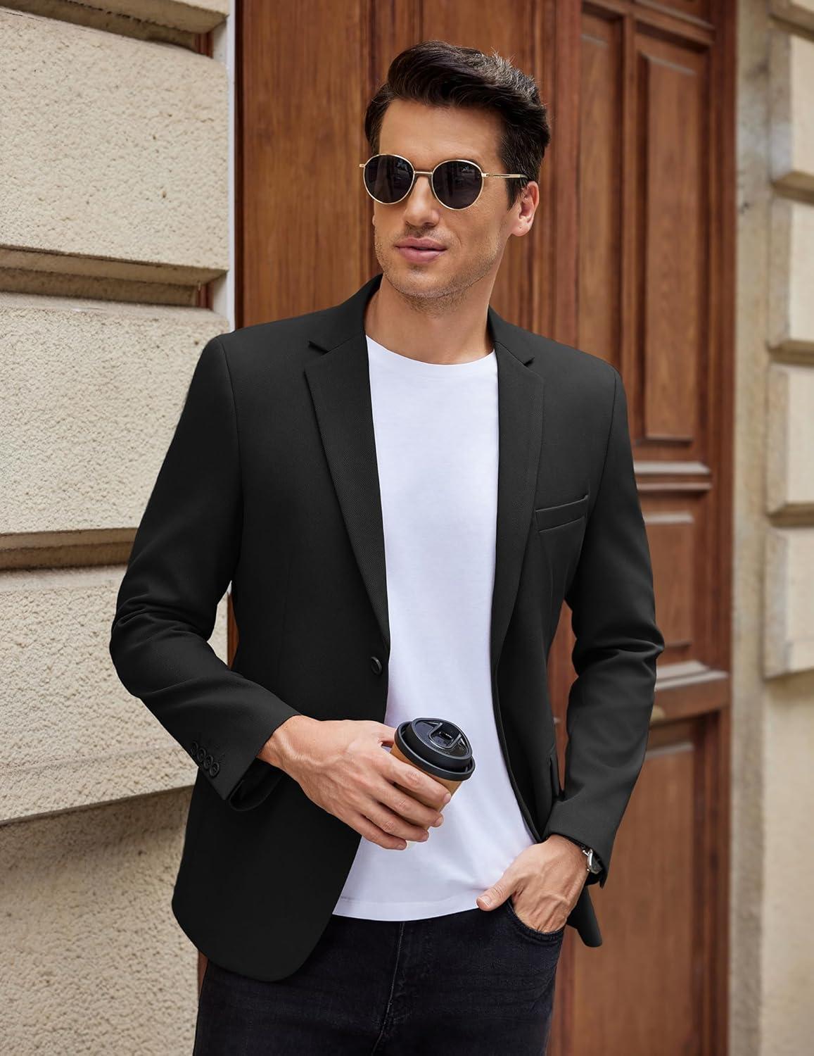 COOFANDY Men’s Casual Blazer Slim Fit Lightweight Sport Coat One Button Suit Jacket(Black)