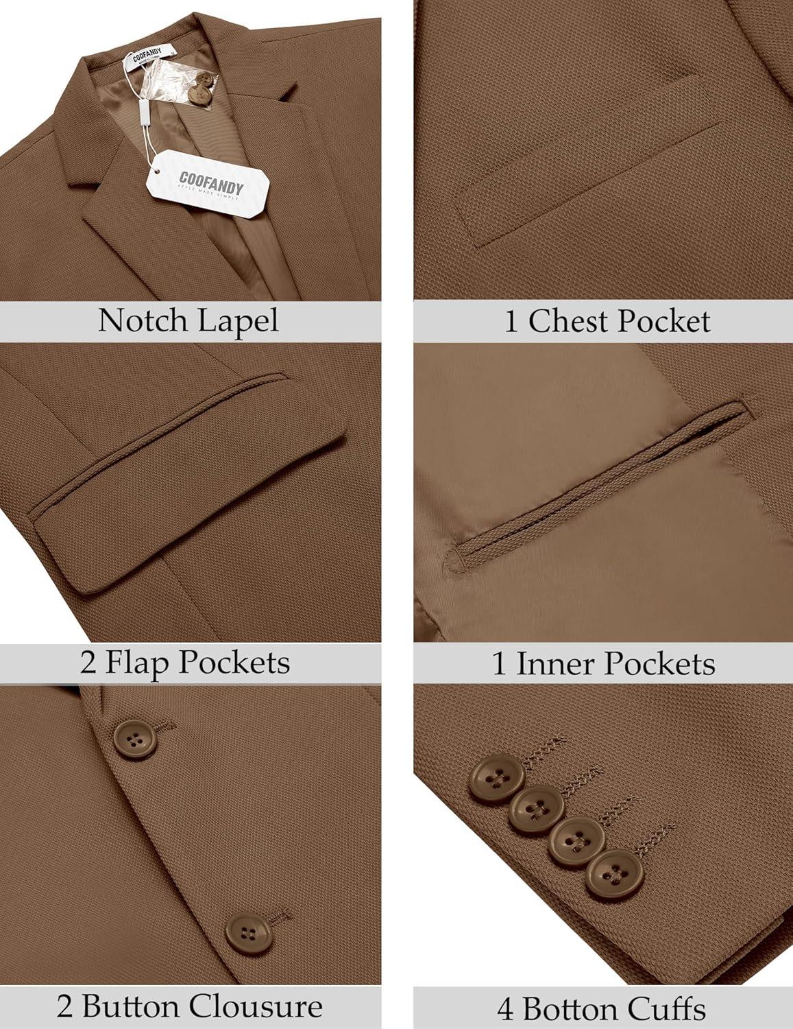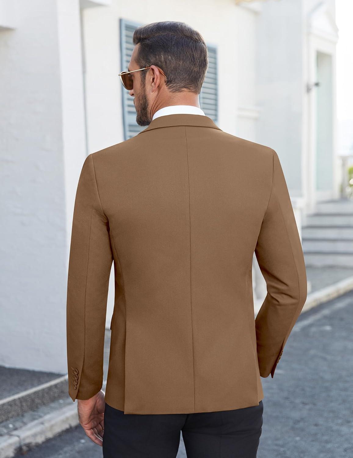 COOFANDY Men’s Casual Blazer Slim Fit Lightweight Sport Coat Two Button Suit Jacket(Brown)