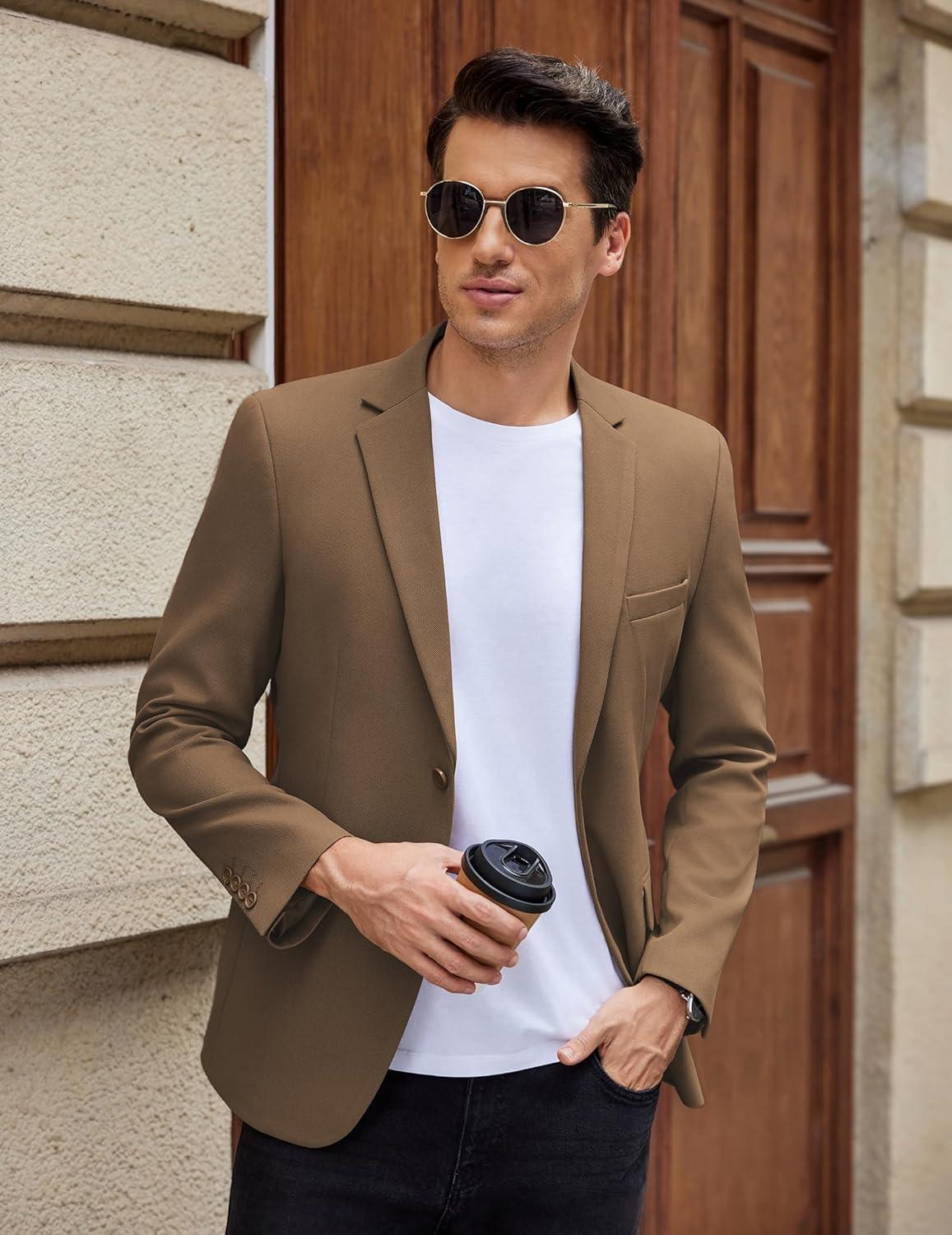 COOFANDY Men’s Casual Blazer Slim Fit Lightweight Sport Coat One Button Suit Jacket(Brown)