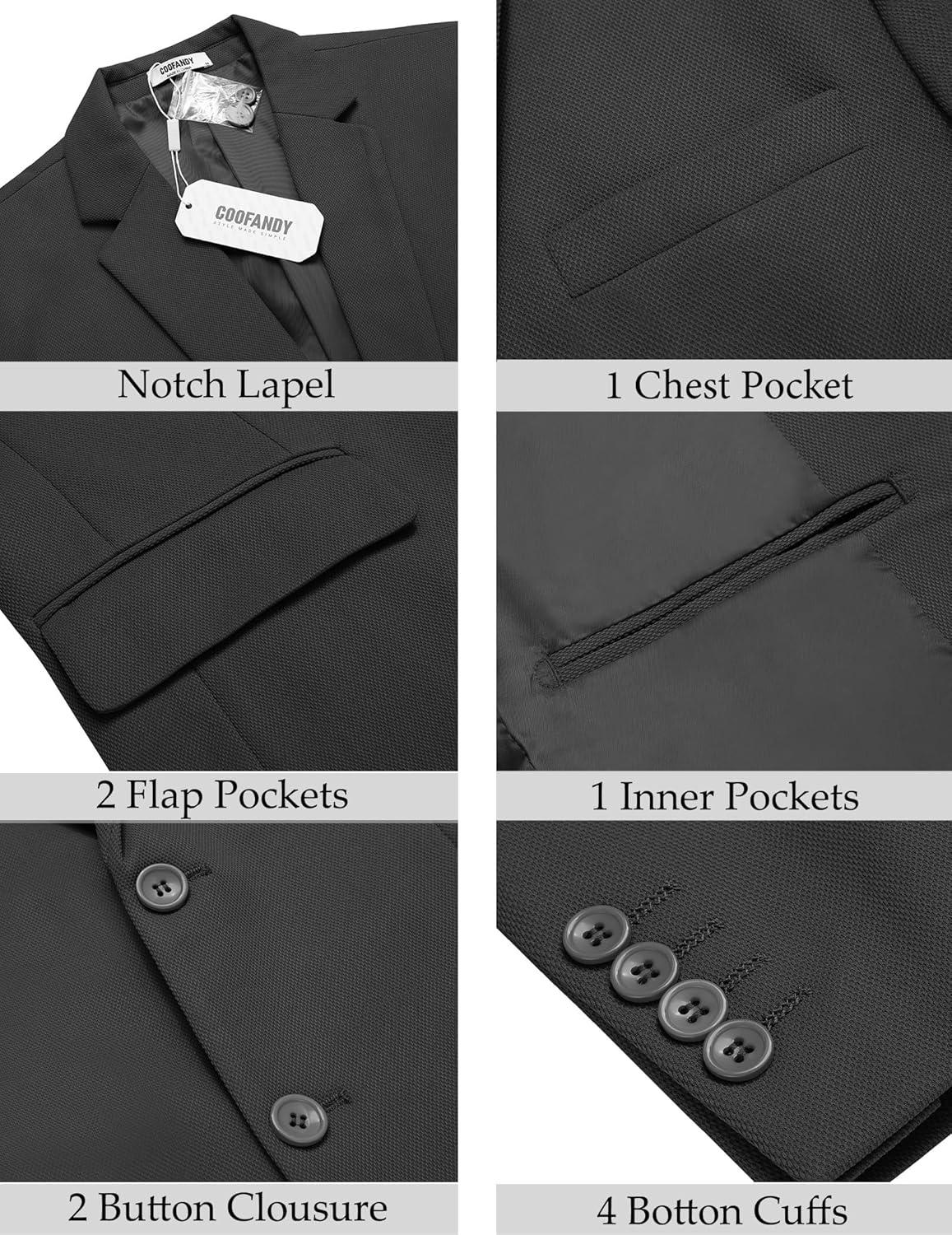 COOFANDY Men’s Casual Blazer Slim Fit Lightweight Sport Coat Two Button Suit Jacket(Black)