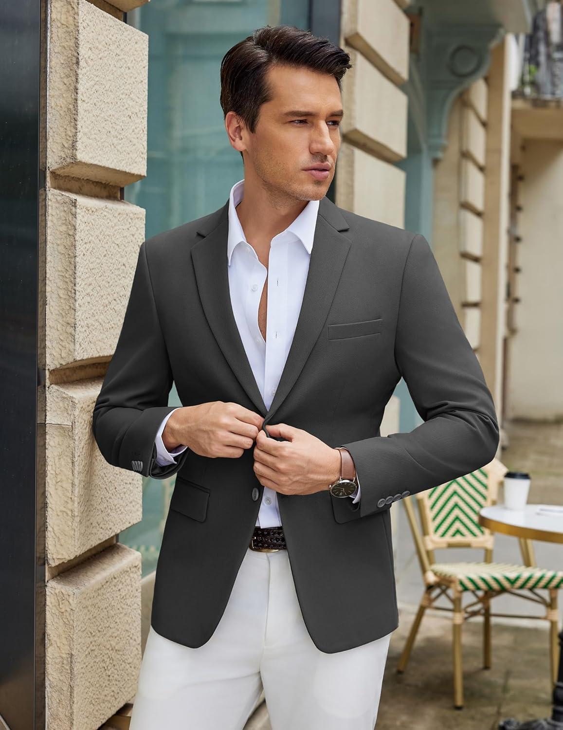 COOFANDY Men’s Casual Blazer Slim Fit Lightweight Sport Coat Two Button Suit Jacket(Dark Grey)