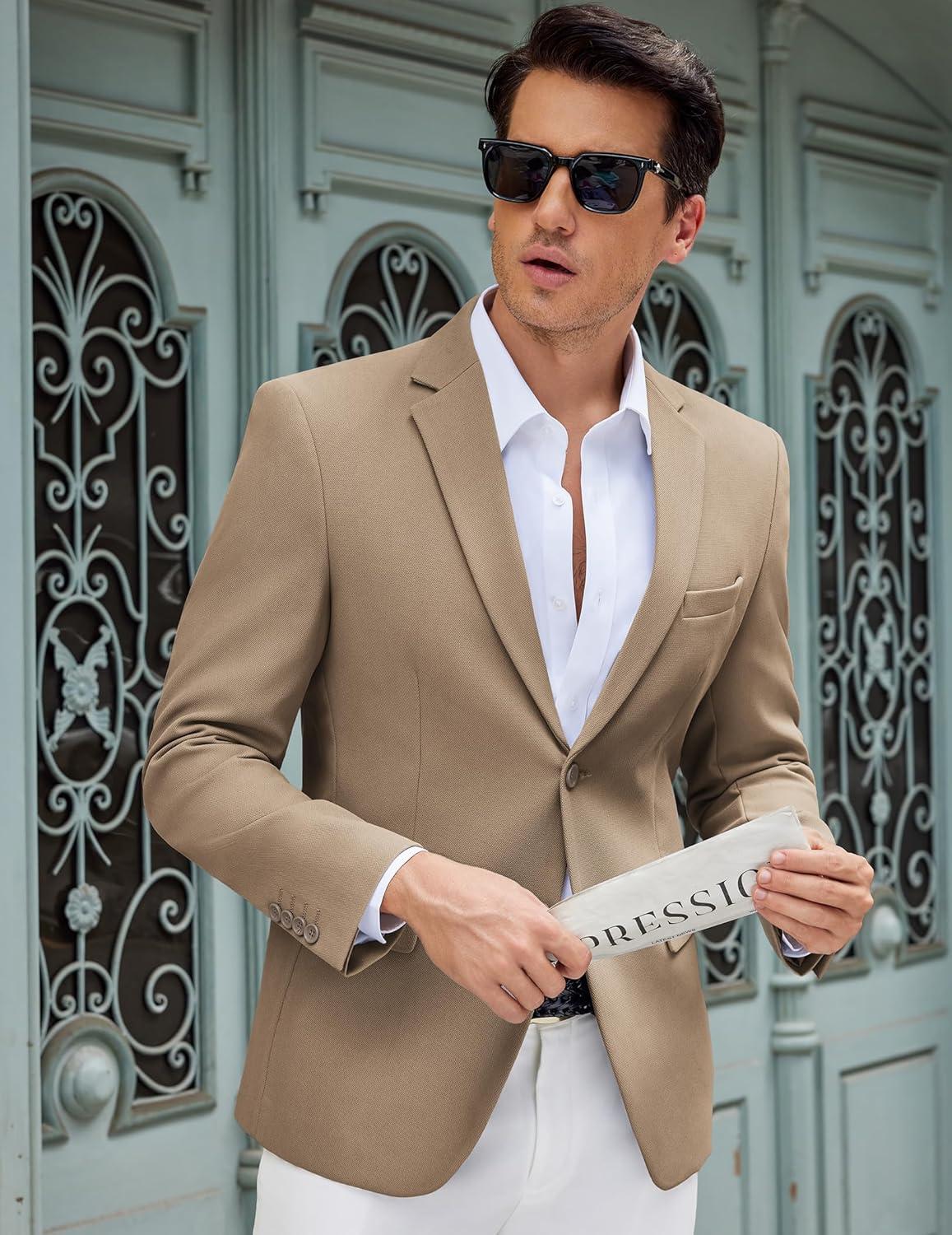 COOFANDY Men’s Casual Blazer Slim Fit Lightweight Sport Coat One Button Suit Jacket(Light Beige)