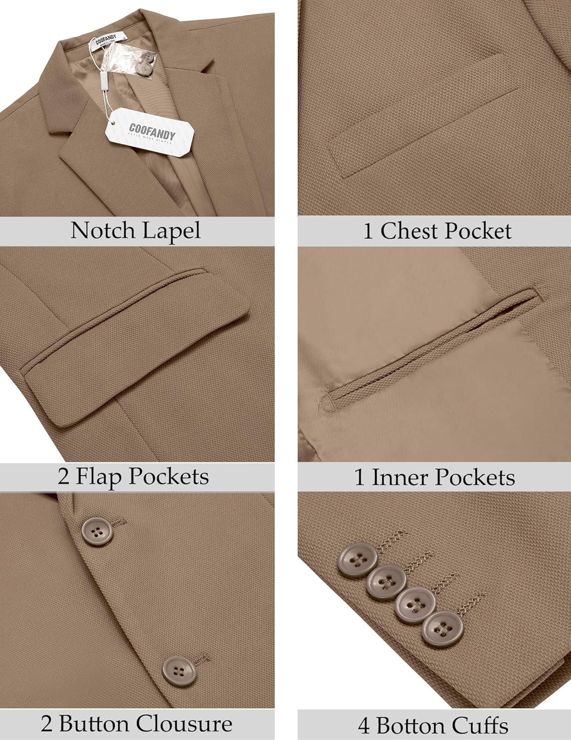 COOFANDY Men’s Casual Blazer Slim Fit Lightweight Sport Coat Two Button Suit Jacket(Khaki)