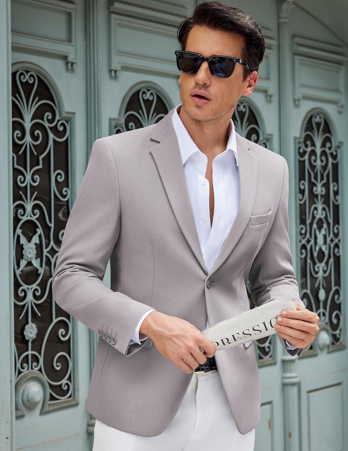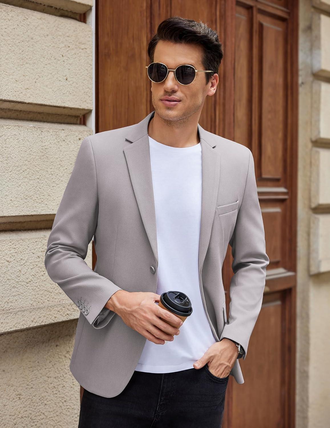 COOFANDY Men’s Casual Blazer Slim Fit Lightweight Sport Coat Two Button Suit Jacket(Light Grey)