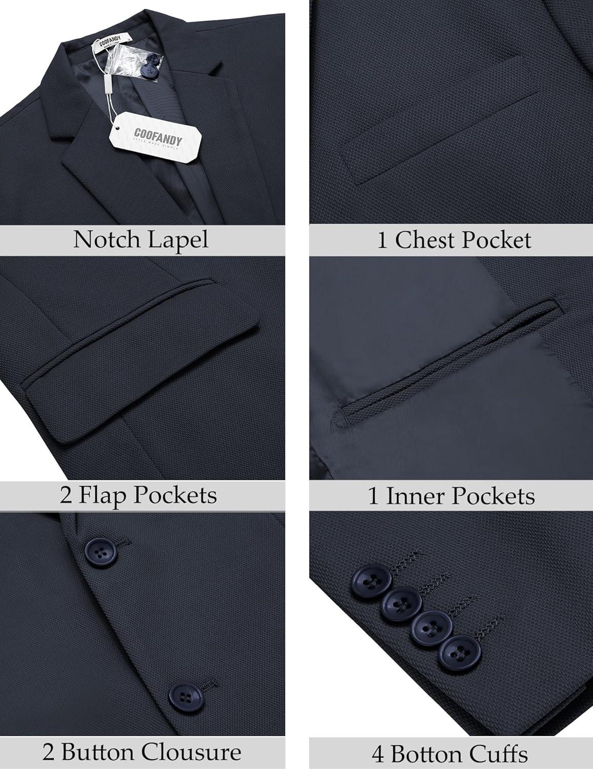 COOFANDY Men’s Casual Blazer Slim Fit Lightweight Sport Coat Two Button Suit Jacket(Navy Blue)
