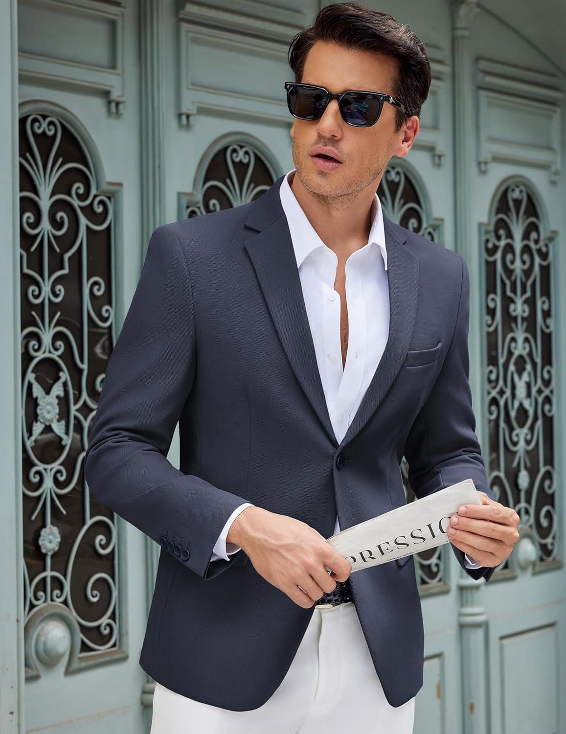 COOFANDY Men’s Casual Blazer Slim Fit Lightweight Sport Coat One Button Suit Jacket(Gray)