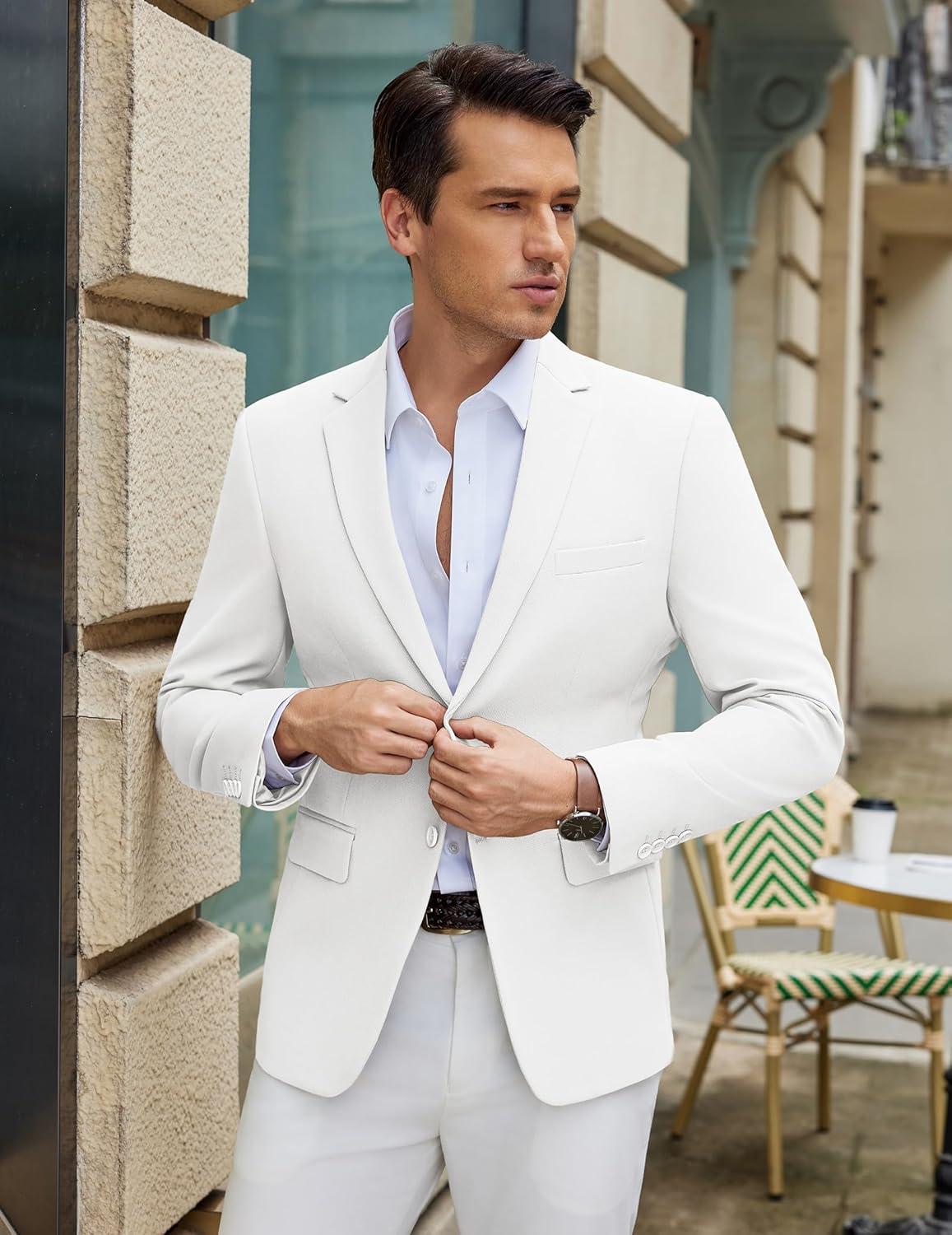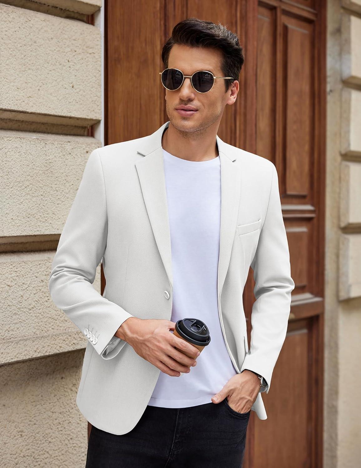 COOFANDY Men’s Casual Blazer Slim Fit Lightweight Sport Coat Two Button Suit Jacket(White)